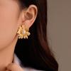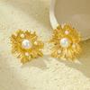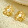 Brincos Franceses Retrô de Nicho de Alta Qualidade em Aço Inoxidável Pétalas Irregulares Linhas Incrustadas com Brincos de Pérola Atacado