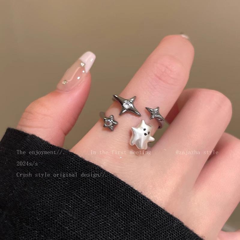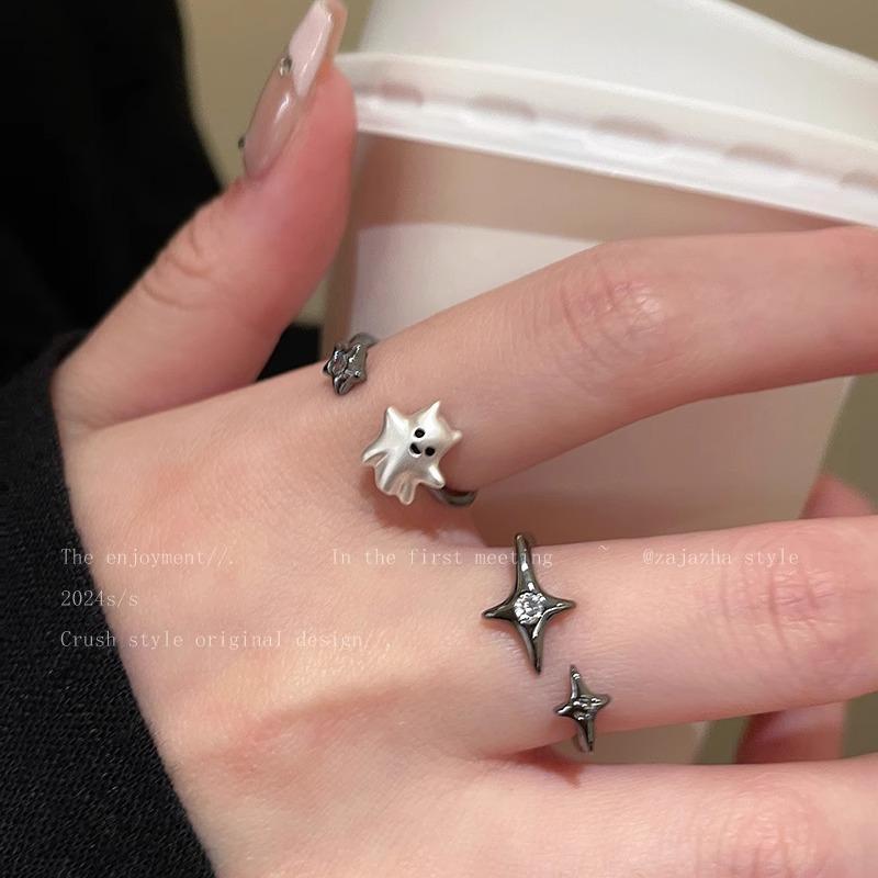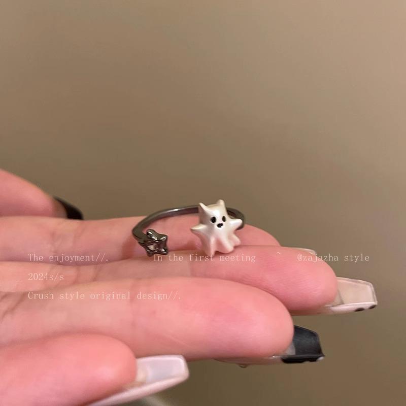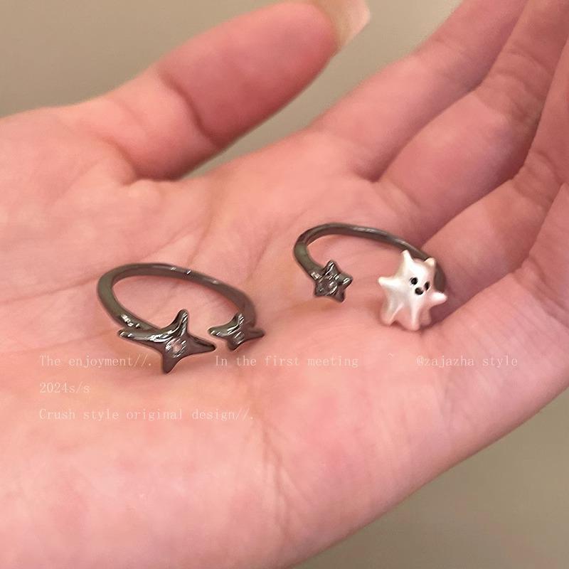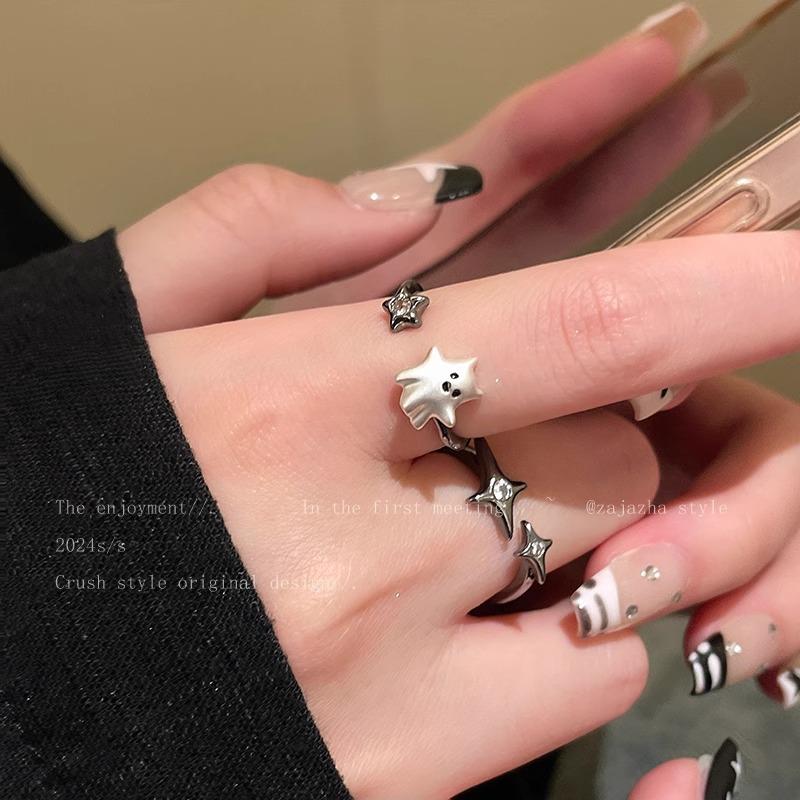Novo Design de Nicho Anel Aberto Simples e Versátil Fofo Desenho Animado Anel Temperamento Luxo Leve para Mulheres