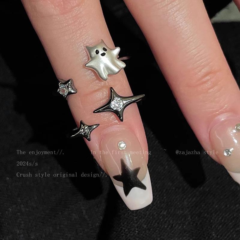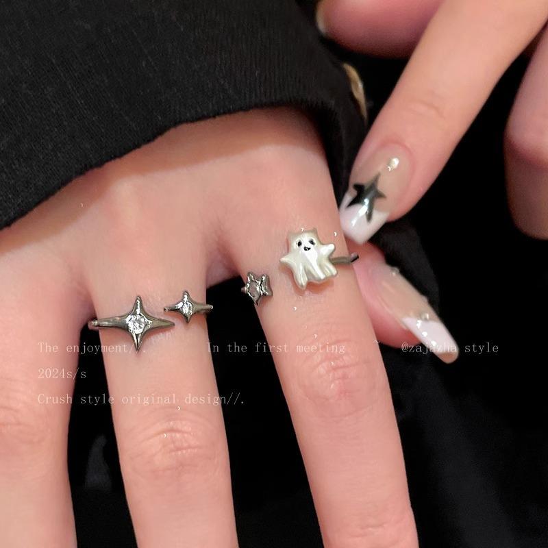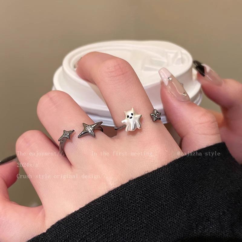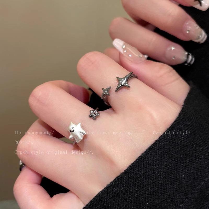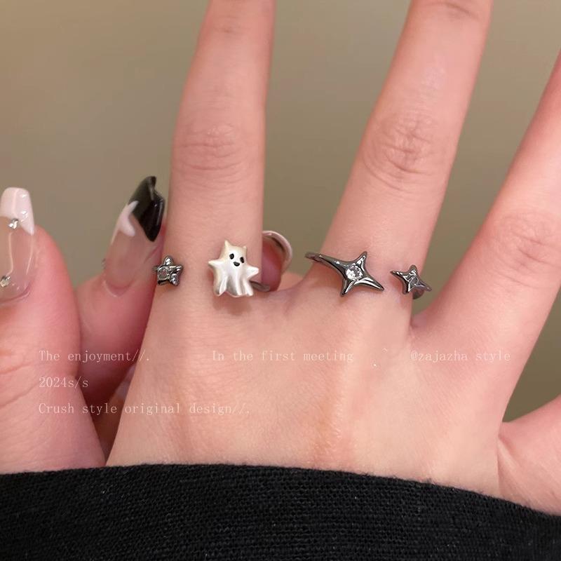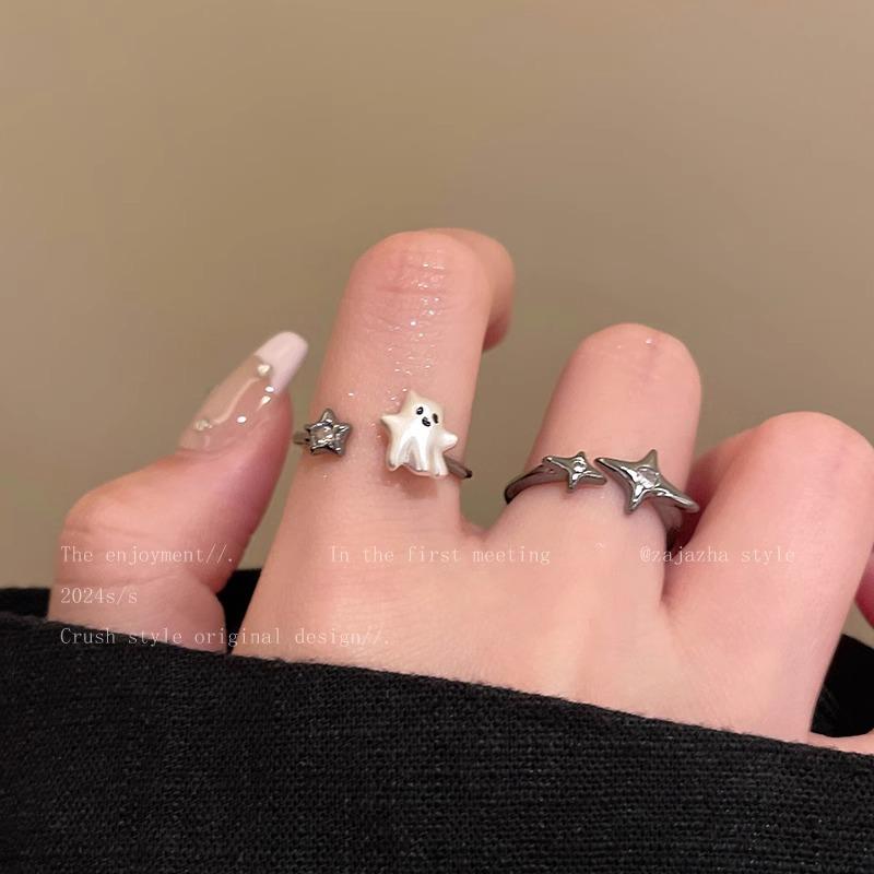 Novo Design de Nicho Anel Aberto Simples e Versátil Fofo Desenho Animado Anel Temperamento Luxo Leve para Mulheres