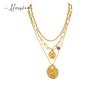 Hongfei Europeu e Americano Irregular Duplo Marca Red Pine Colar Feminino 18K Ouro Aço Inoxidável Nicho Colar de Alta Qualidade Corrente Jóias