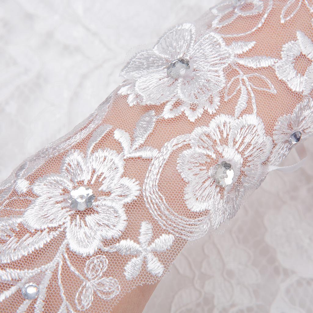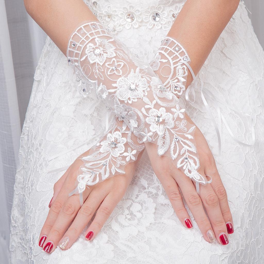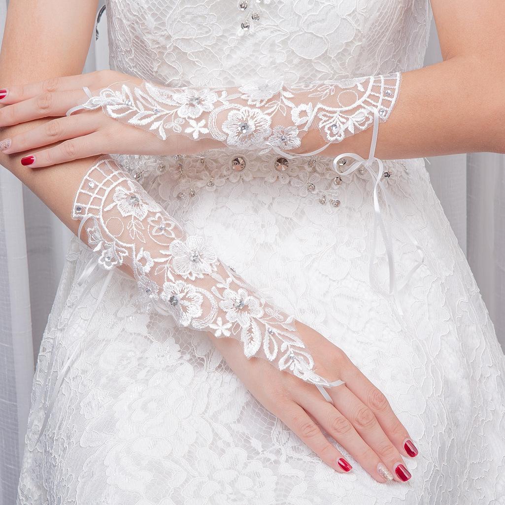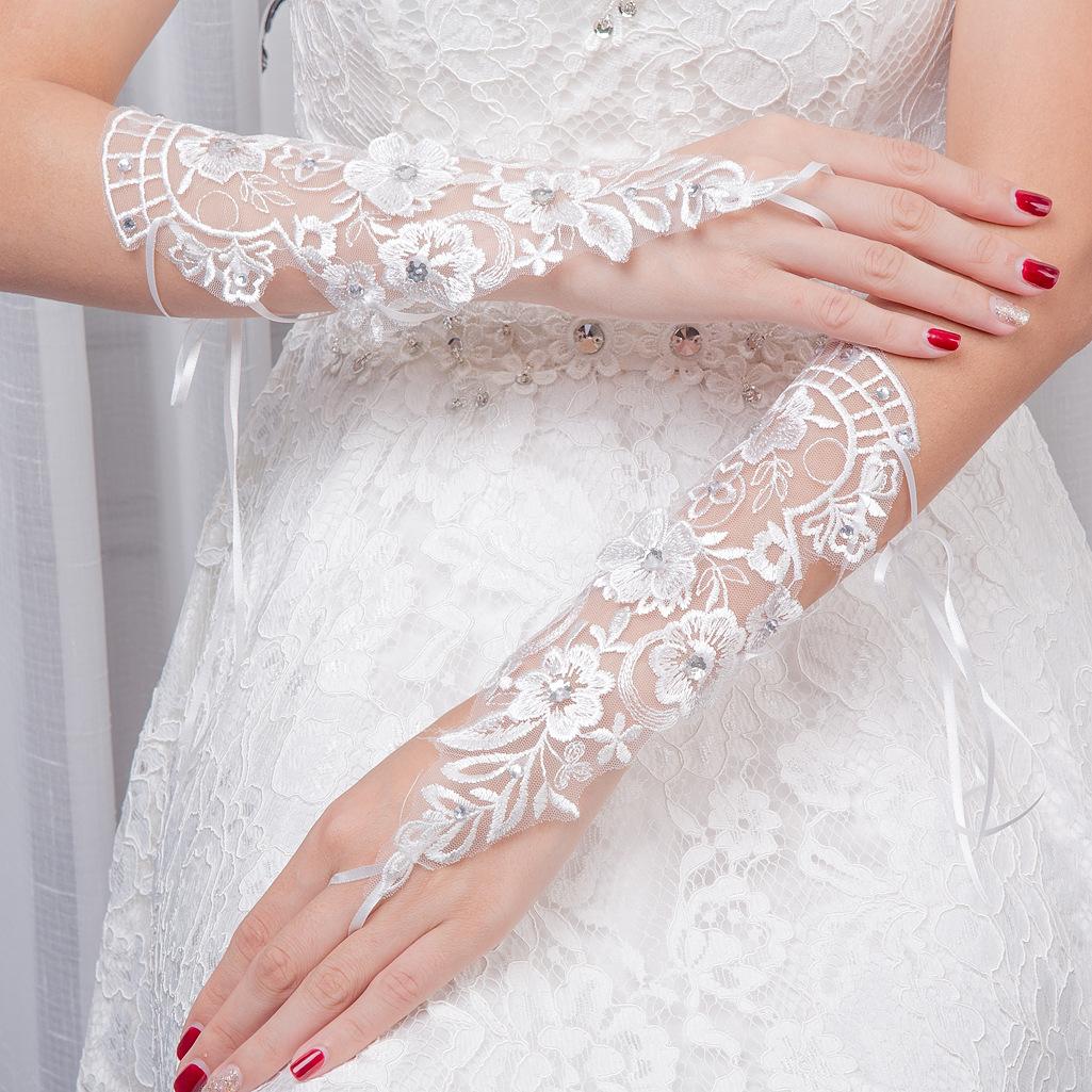 Luvas de casamento nupcial direto da fábrica em estoque flor branca bordado diamante leque em forma de acessórios de dedo aberto luvas atacado