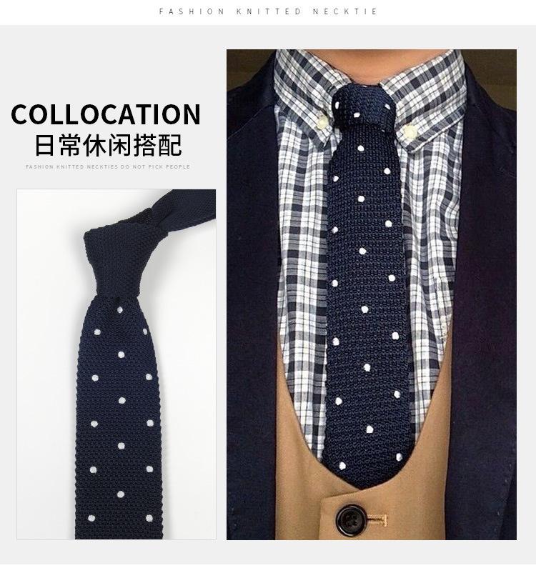 Estilo coreano gravata estreita vestido masculino negócio britânico moda retrô lã malha 6 cm ponto azul cabeça chata elegante