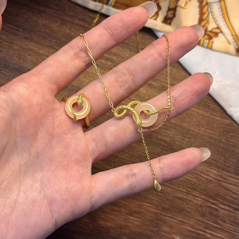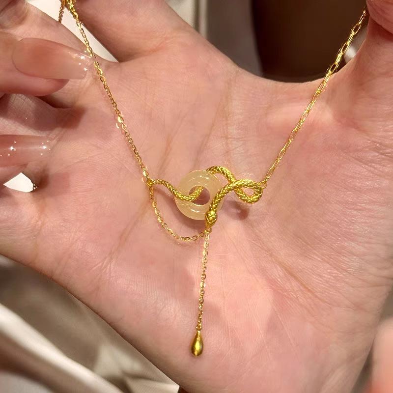 Novo estilo chinês enrolamento cobra fivela segura colar anel estilo chinês ano da cobra borla clavícula corrente colar de alta qualidade para mulheres