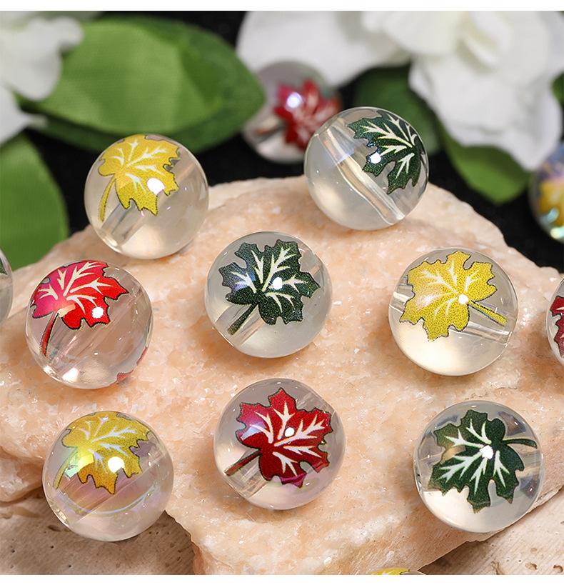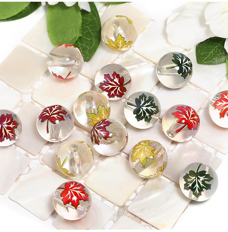 Compre Contas de acrílico transparentes altas, impressão de folha de bordo, contas redondas, corrente de celular, chaveiro, caneta de contas faça você mesmo, acessórios de joias no atacado no Joom.pro