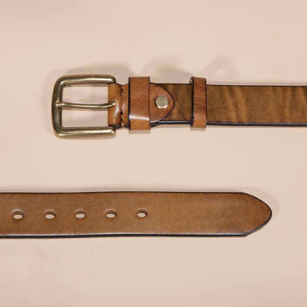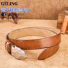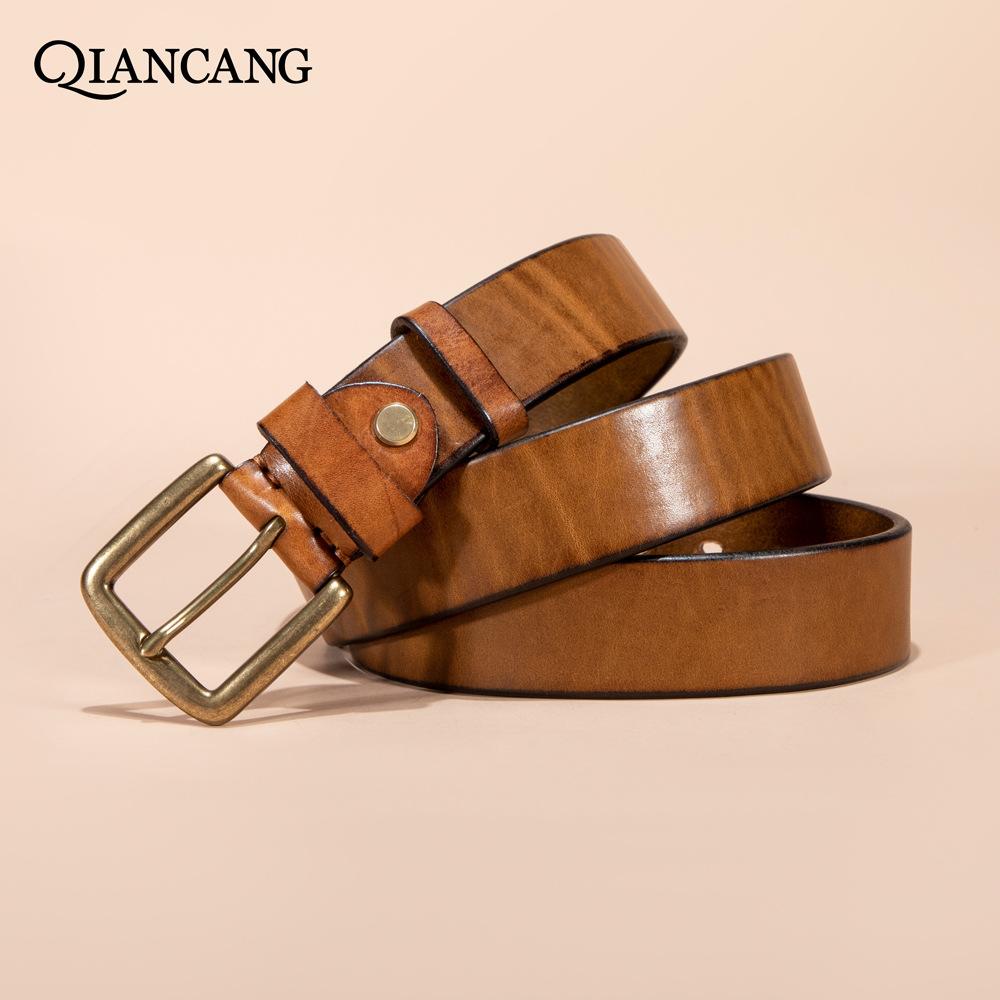 Em estoque Vintage Cobre Fivela Feito à Mão Top Layer Cinto de Couro de Vaca Cinto Masculino Couro Genuíno Calça Casual Cinto para Cross-border