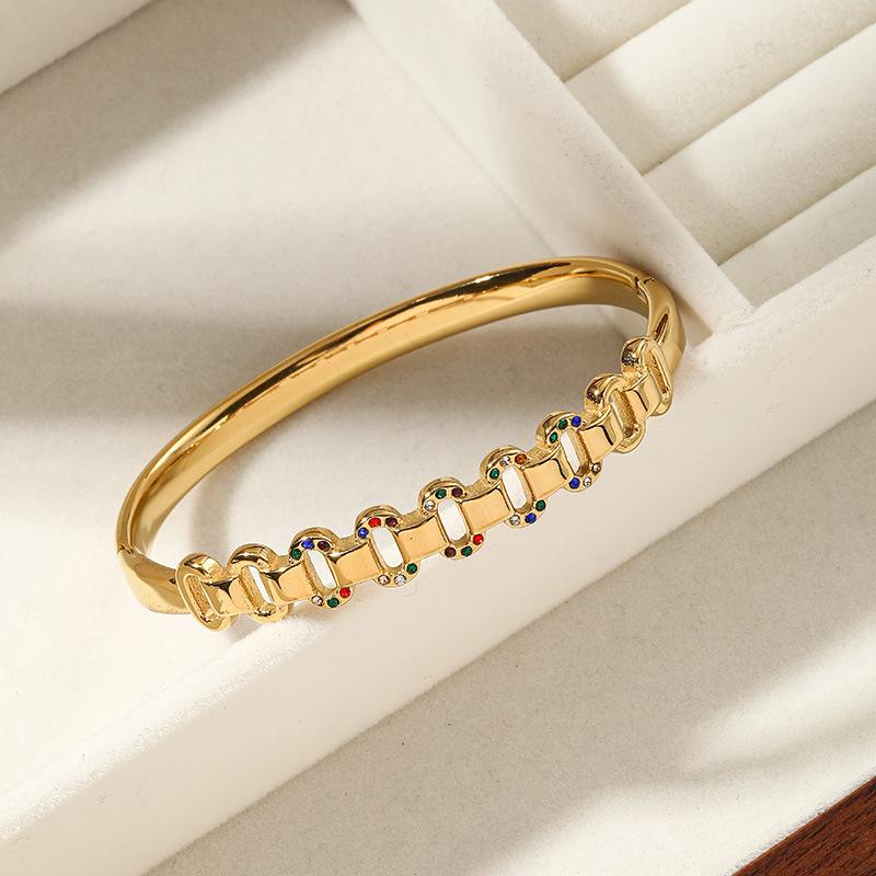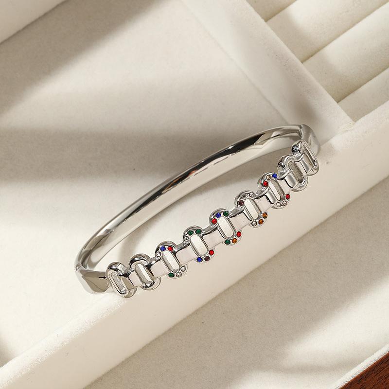 Compre Pulseira aberta de aço titânio estilo europeu e americano, nova moda, joia de aço inoxidável Joker, zircônia incrustada no atacado no Joom.pro