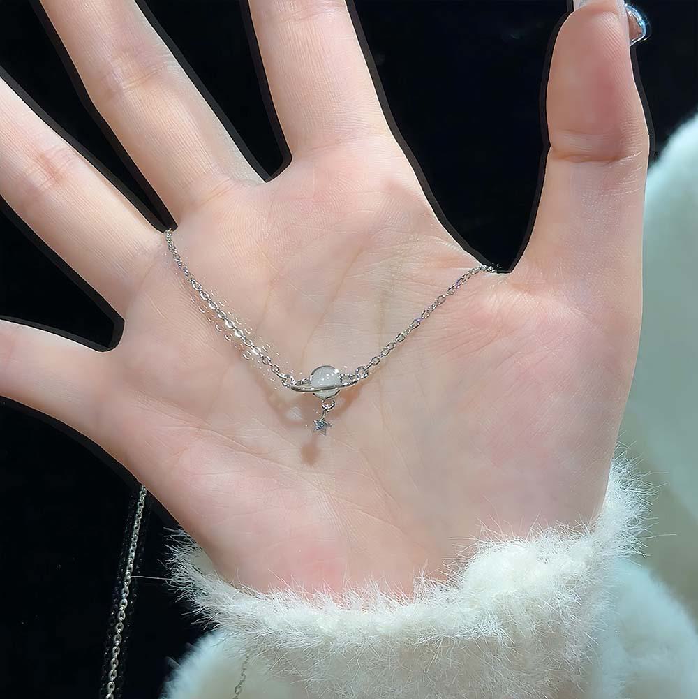 Pingente Planeta Estrela de Cinco Pontas para Mulheres Outono 2025 Nicho Personalidade Fresca Exquisita Aço Titânio Não Desbota Corrente Clavicular Atacado