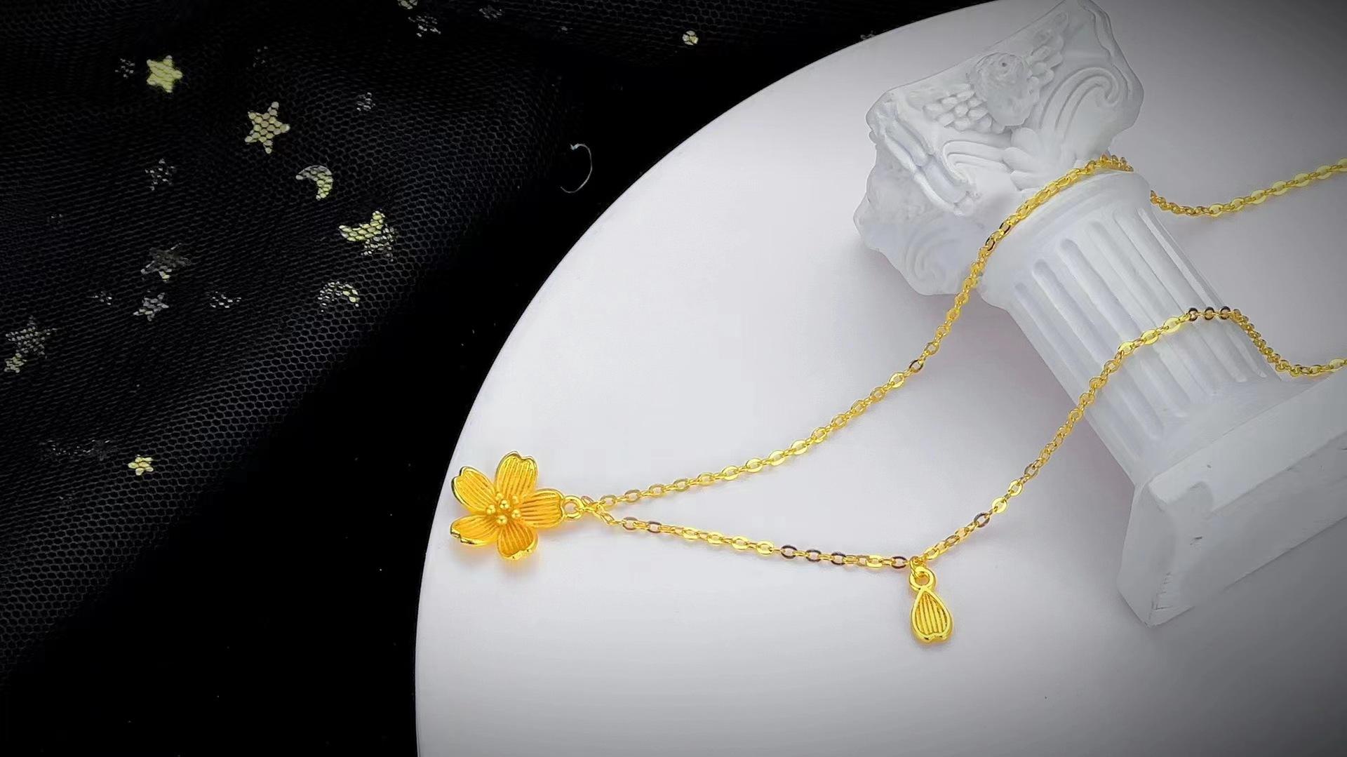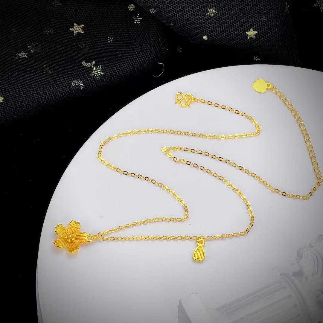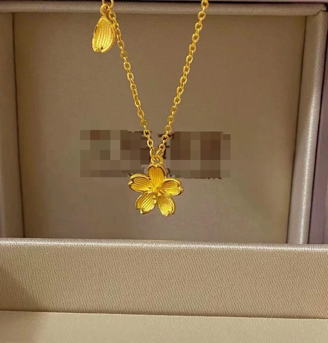 Colar Ano da Serpente Ouro Areia Flor de Cerejeira, Mesmo Estilo do Xiaohongshu, Corrente Integrada, Moderno, Simples, Elegante, Conjunto de Colares para Mulheres, Corrente para Clavícula