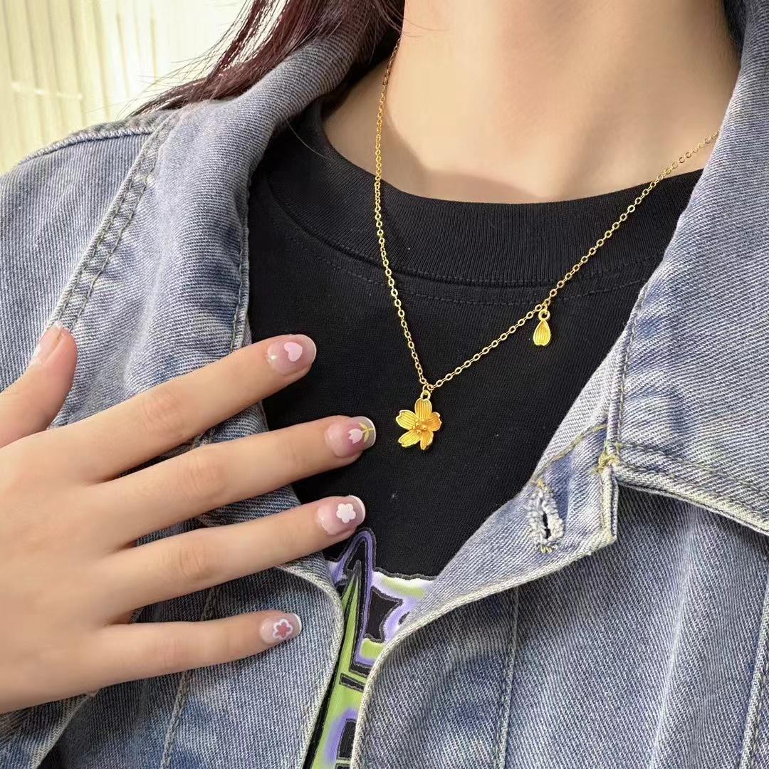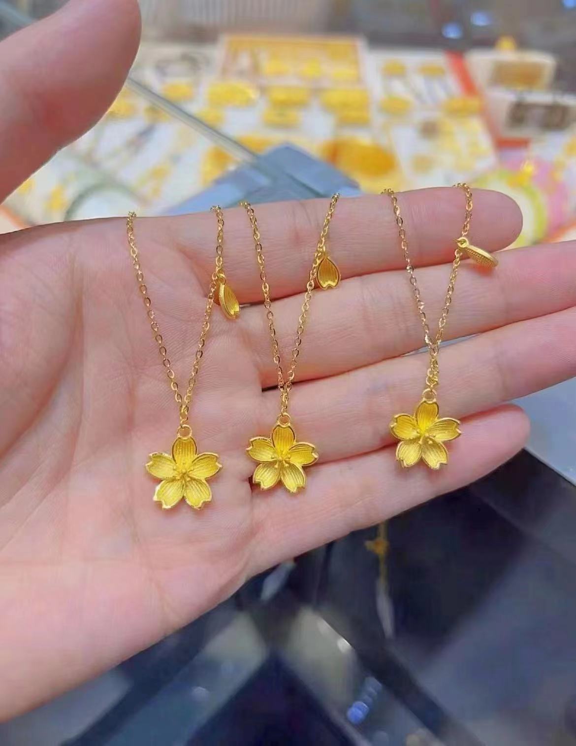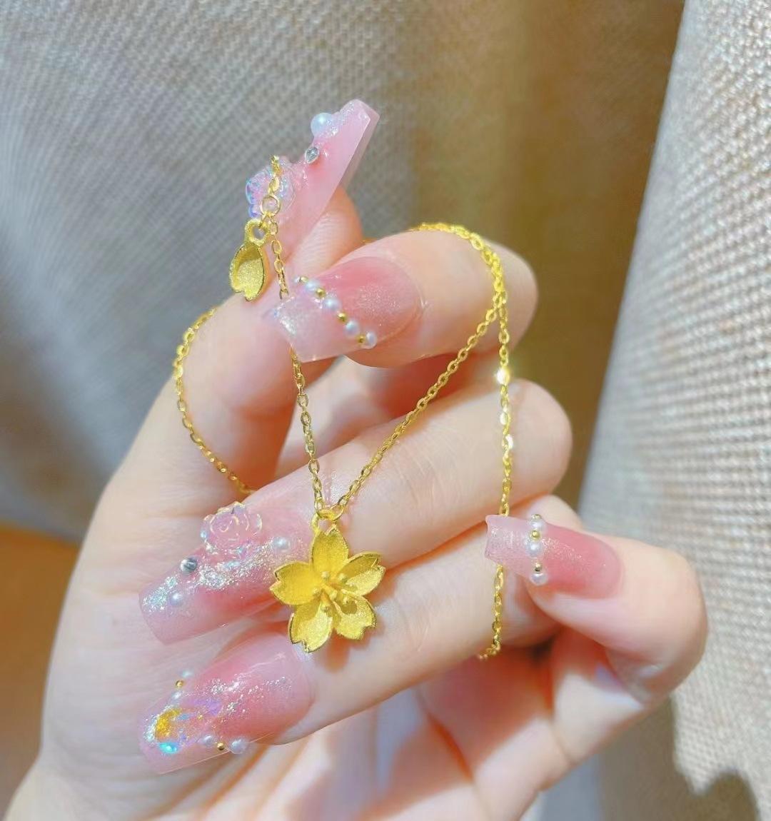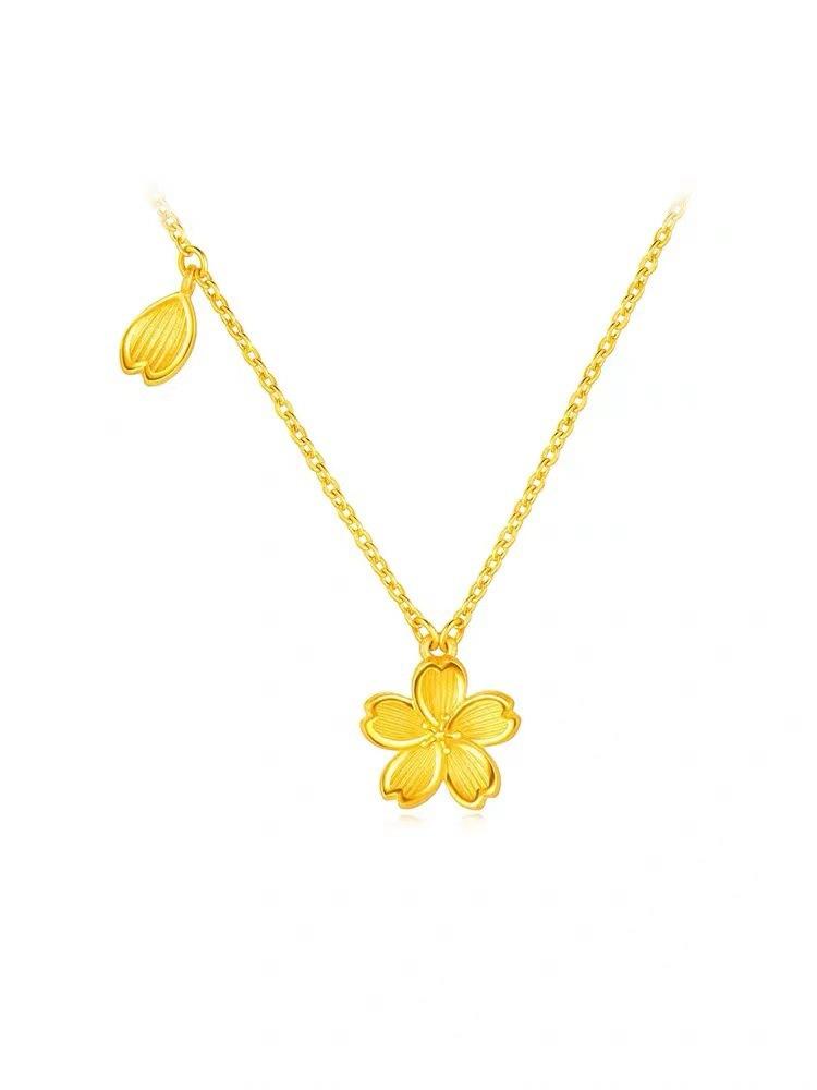 Colar Ano da Serpente Ouro Areia Flor de Cerejeira, Mesmo Estilo do Xiaohongshu, Corrente Integrada, Moderno, Simples, Elegante, Conjunto de Colares para Mulheres, Corrente para Clavícula