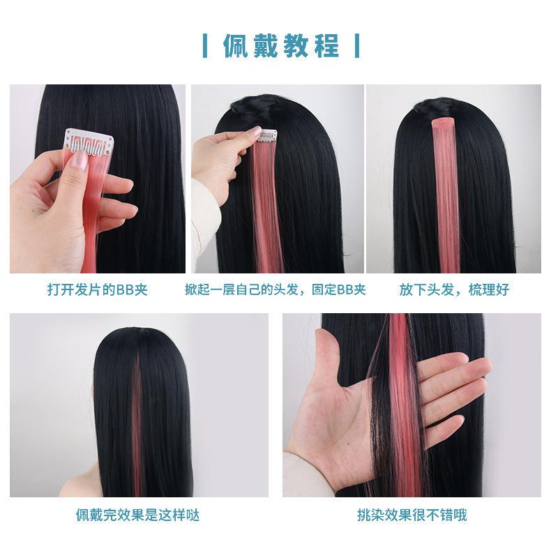 Extensões de Cabelo Coloridas, Tintura Pendurada na Orelha, Mechas Coloridas, Fibra Fosca de Alta Temperatura, Pode Ser Permanentedo, Um Clipe para Cabelo Longo, Raízes de Cabelo Diretas, Peruca da Moda
