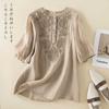 Tops de linho finos femininos soltos de verão 2023 com elegantes camisas de manga curta bordadas de algodão e linho