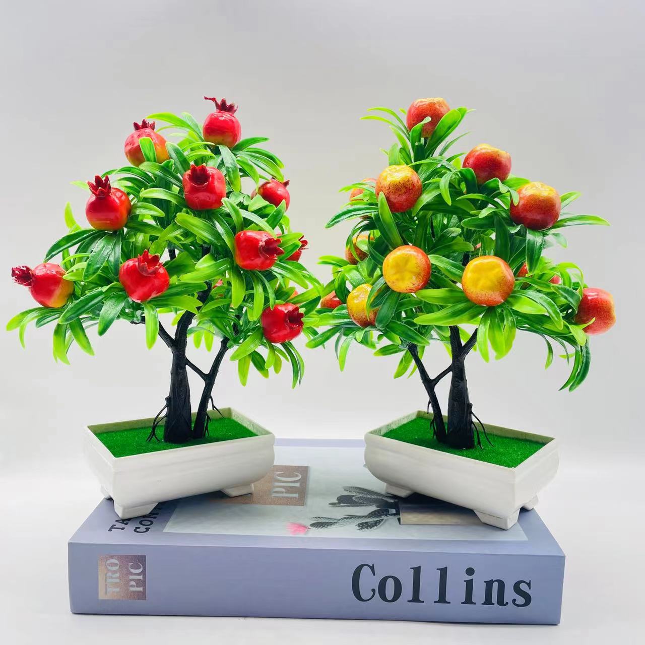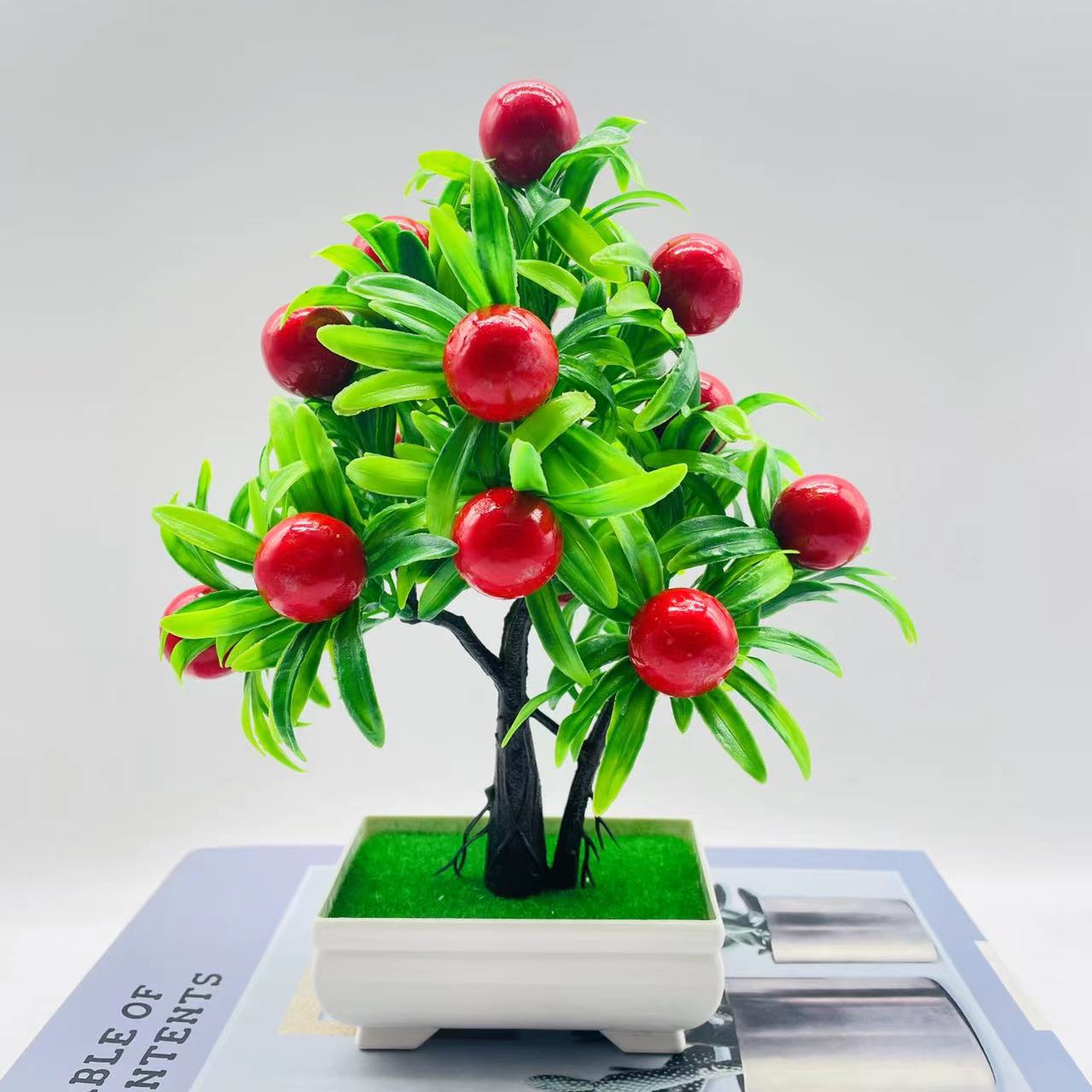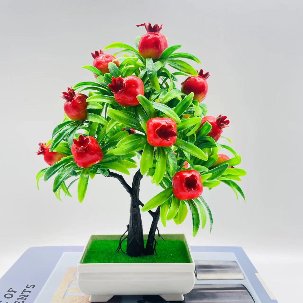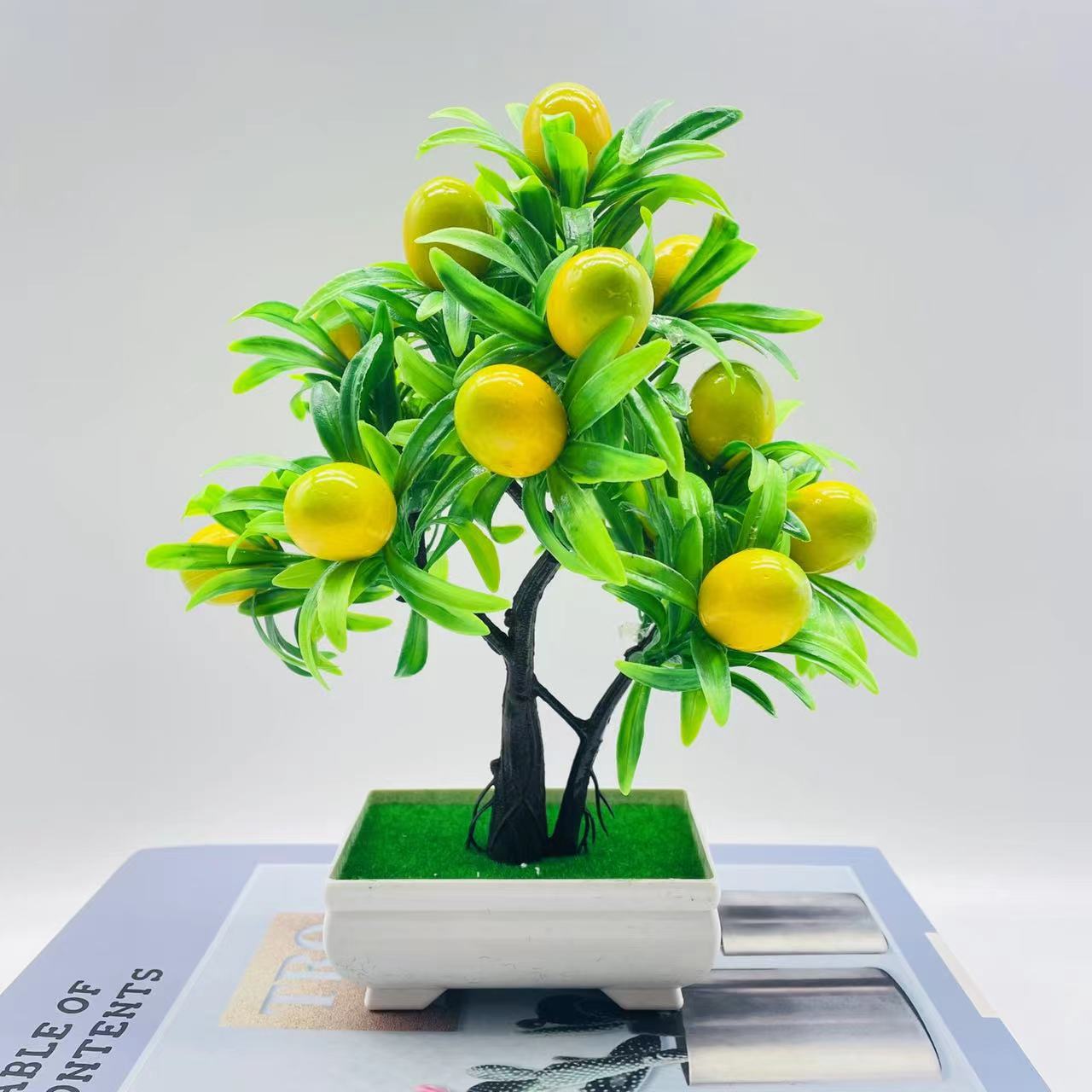 Atacado 15 grande árvore da fortuna de frutas simulação planta verde decoração falso ornamentos de flores bonsai planta árvore frutífera planta em vaso