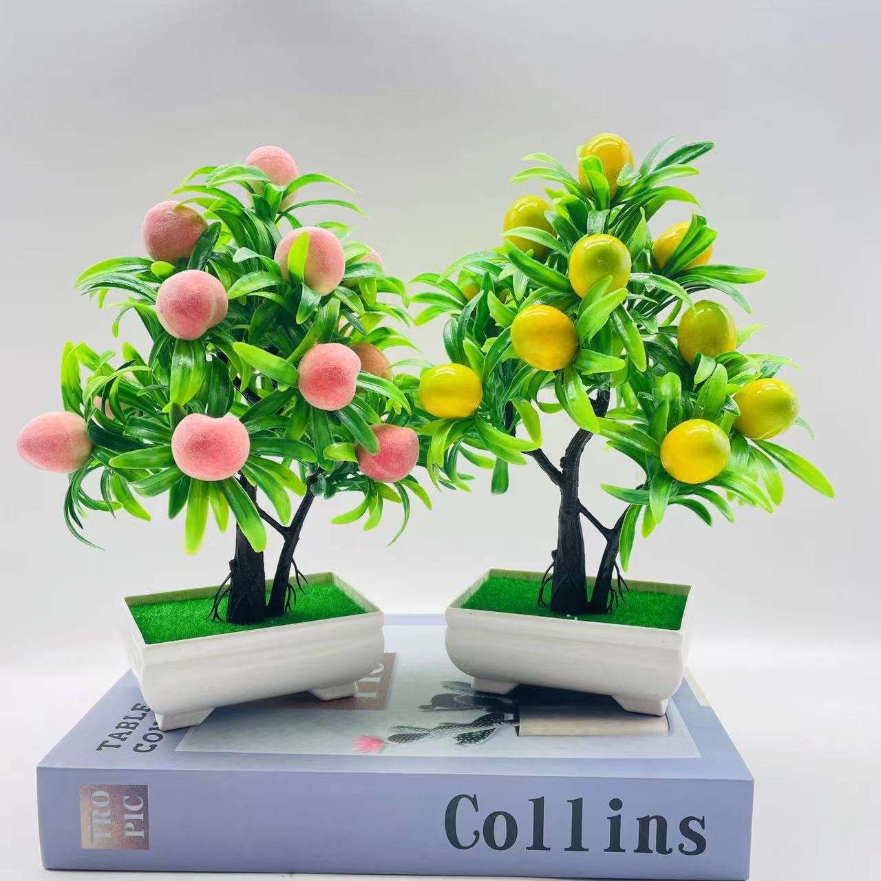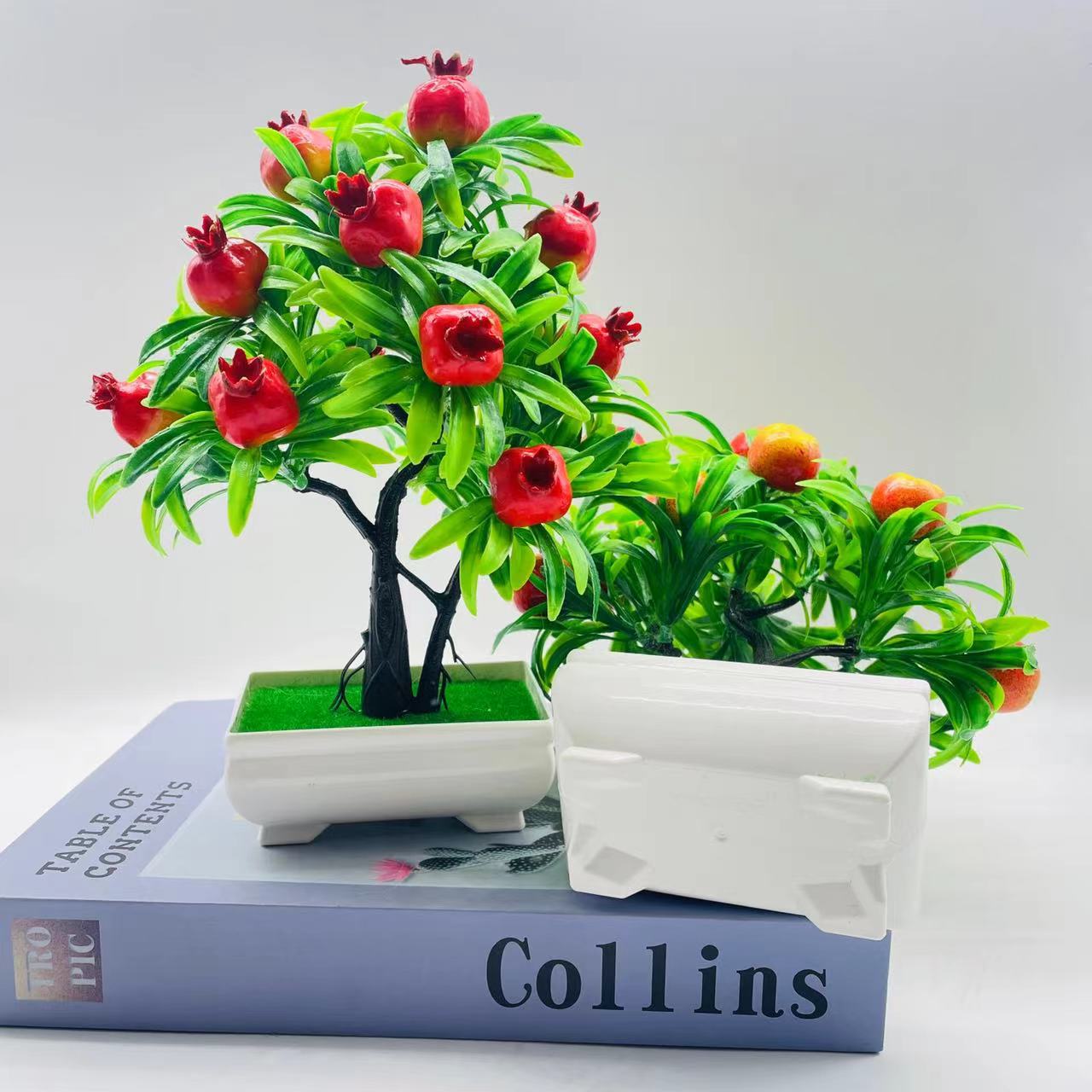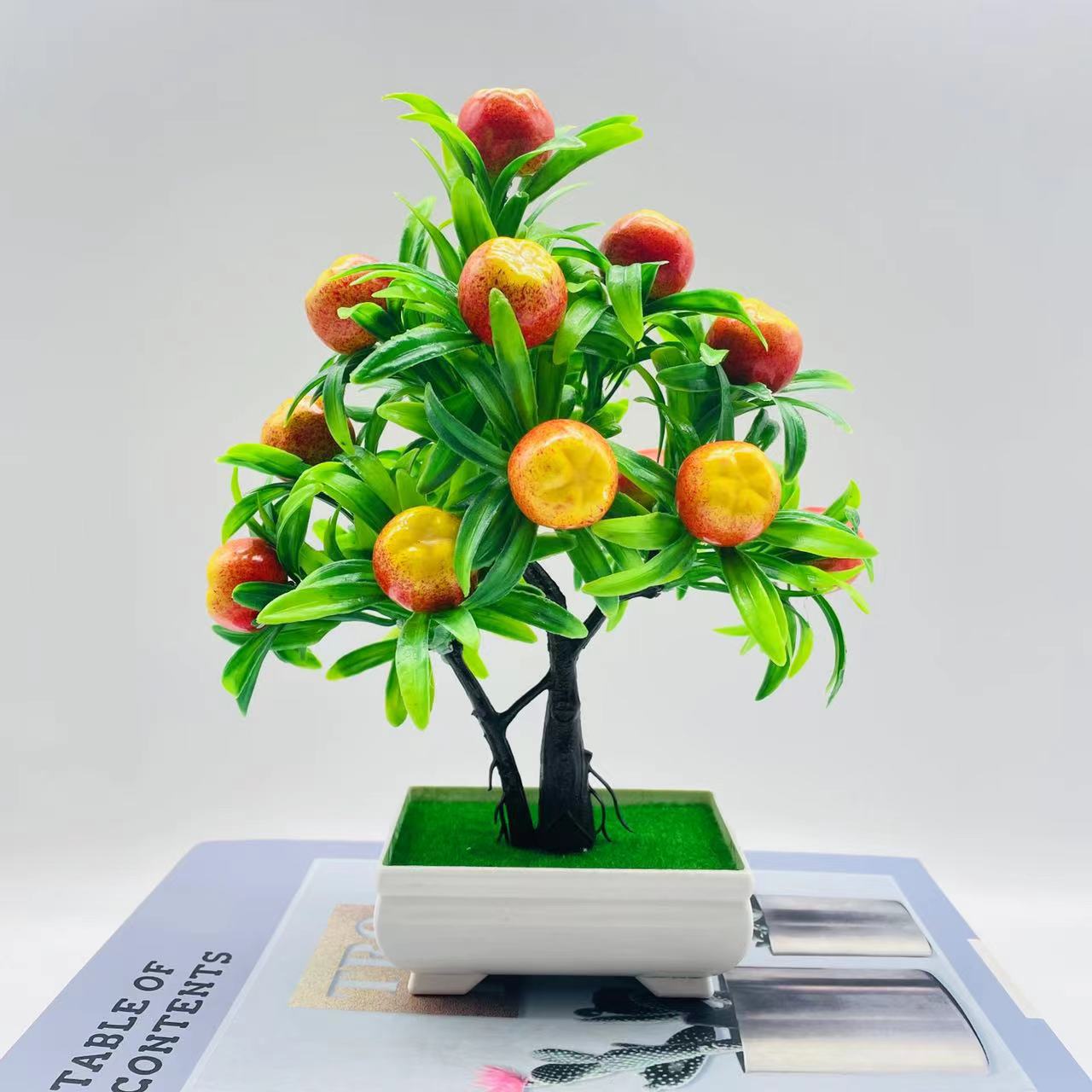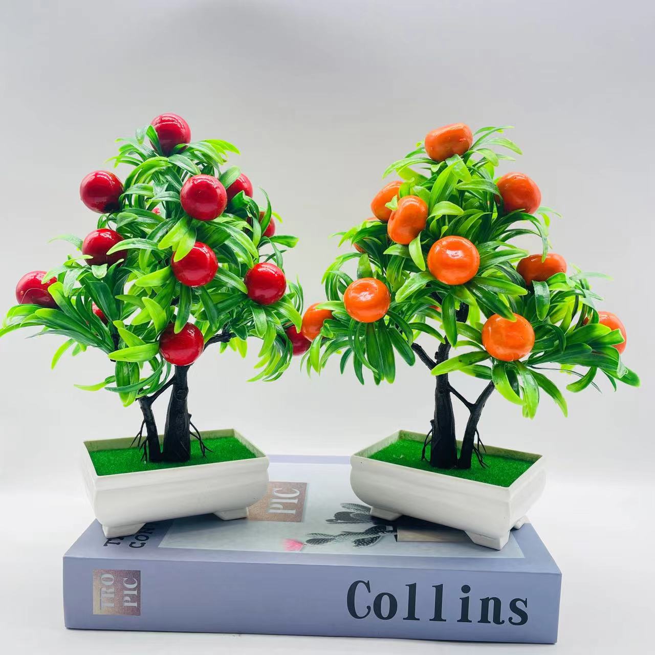 Atacado 15 grande árvore da fortuna de frutas simulação planta verde decoração falso ornamentos de flores bonsai planta árvore frutífera planta em vaso