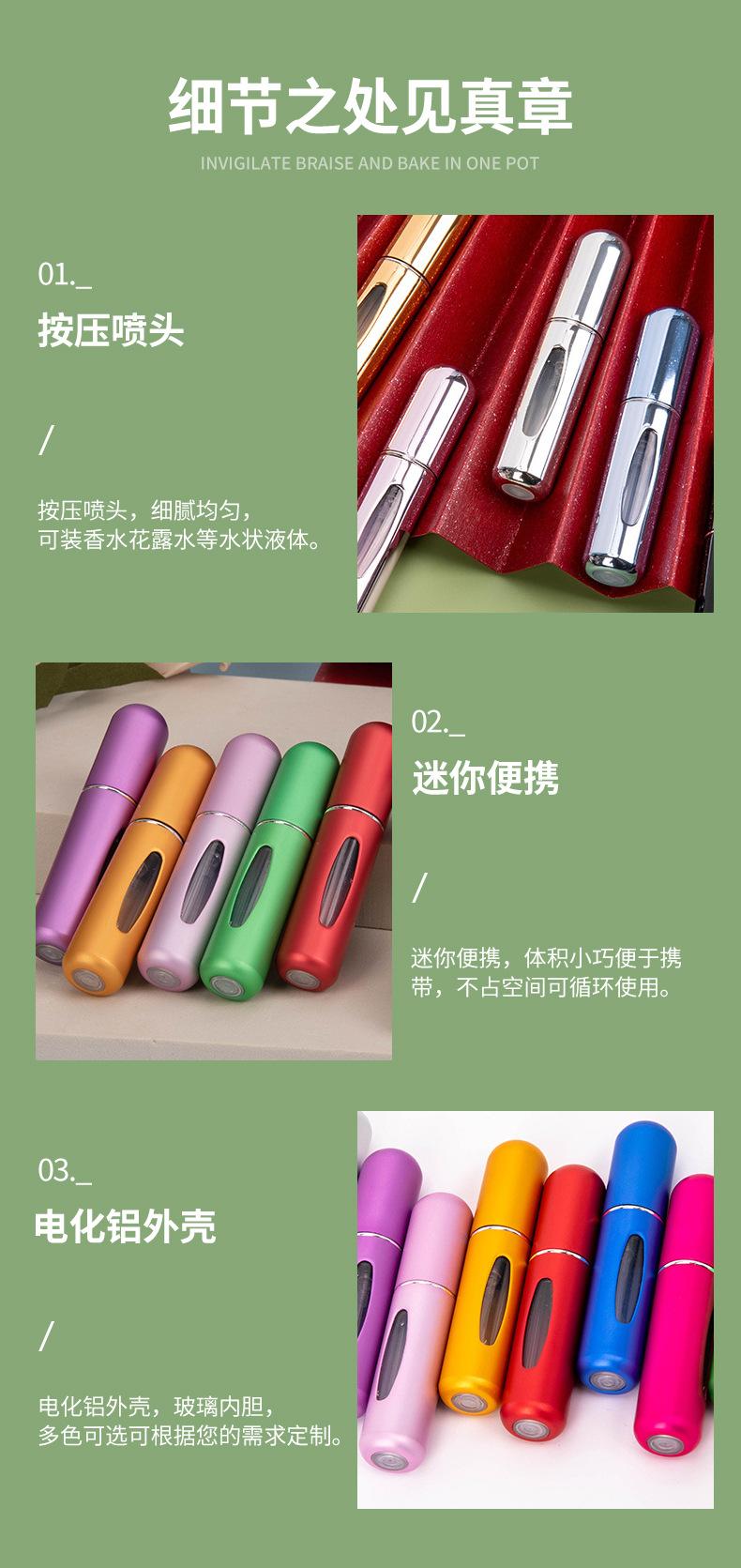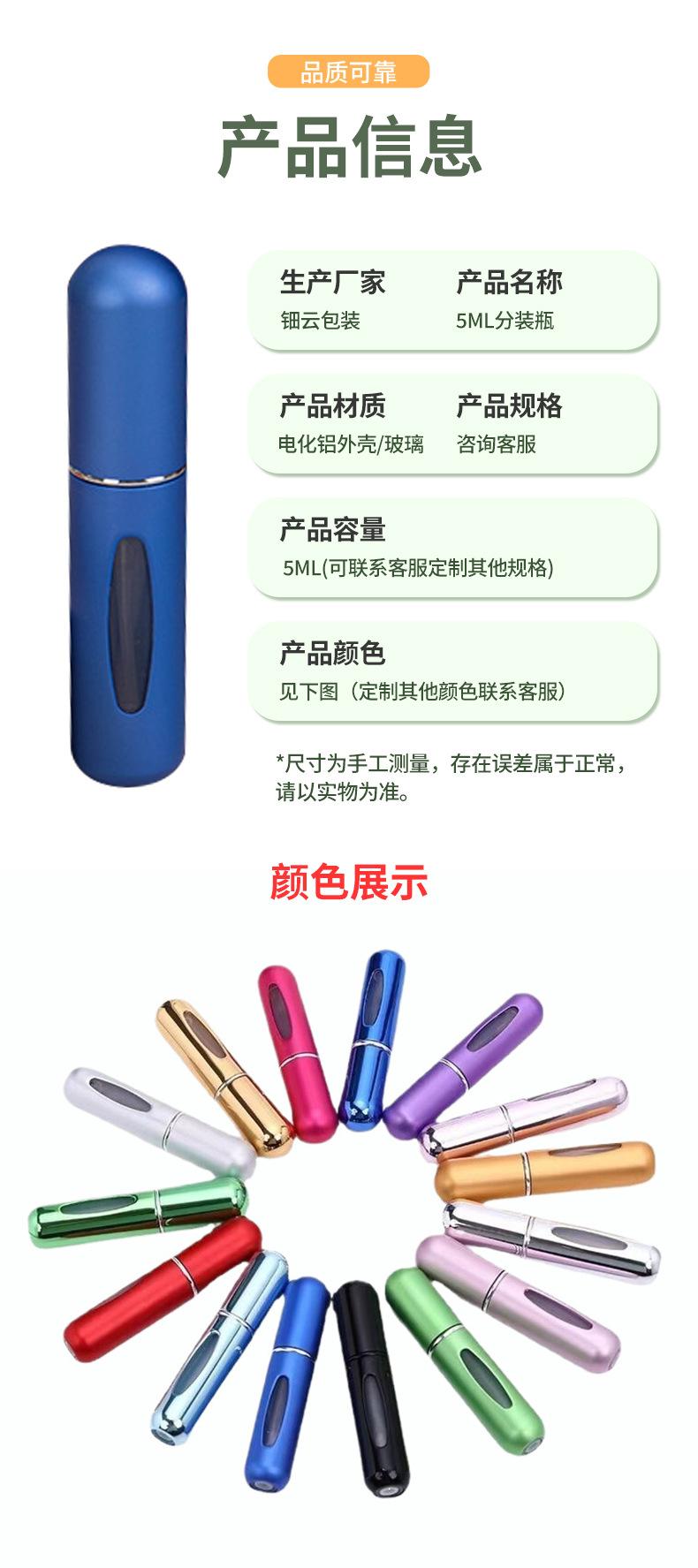 Frasco Recarregável de Perfume 5ml Frasco de Enchimento Inferior Portátil para Viagem Alumínio Eletroquímico Frasco Spray de Perfume Frasco Vazio Pode ser Impresso com Logotipo