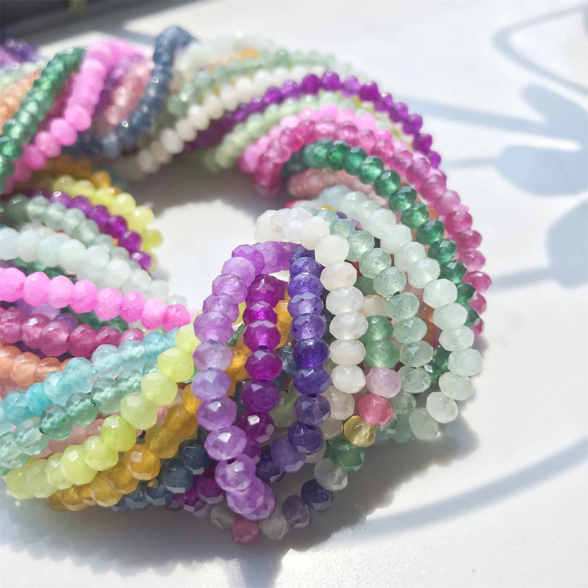 Contas soltas de calcedônia colorida de 3*4mm mais contas de jade coloridas contas de ábaco de roda facetada acessórios para pulseira faça você mesmo