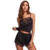 Europeu e americano sexy sexy terno feminino cílios renda sexy lingerie perspectiva tentação preto tira pijamas