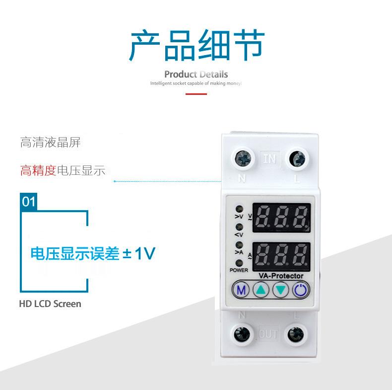 Compre Vendas Diretas de Fábrica 1P+N/1-63A Protetor Inteligente de Sobretensão e Subtensão de Alta Precisão Hd5Va no atacado no Joom.pro