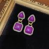 Brincos de design triangular quadrado com esmalte roxo combinando com ouro russo 18, cobre antigo ocidental, indústria pesada e cara