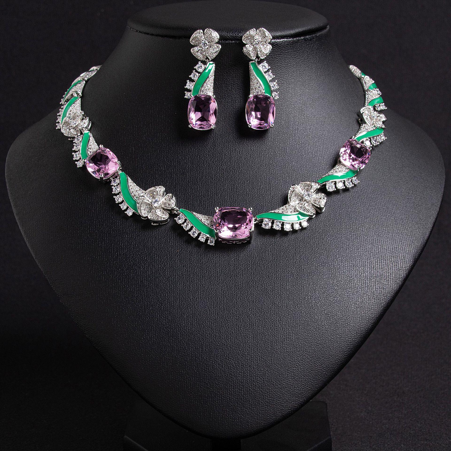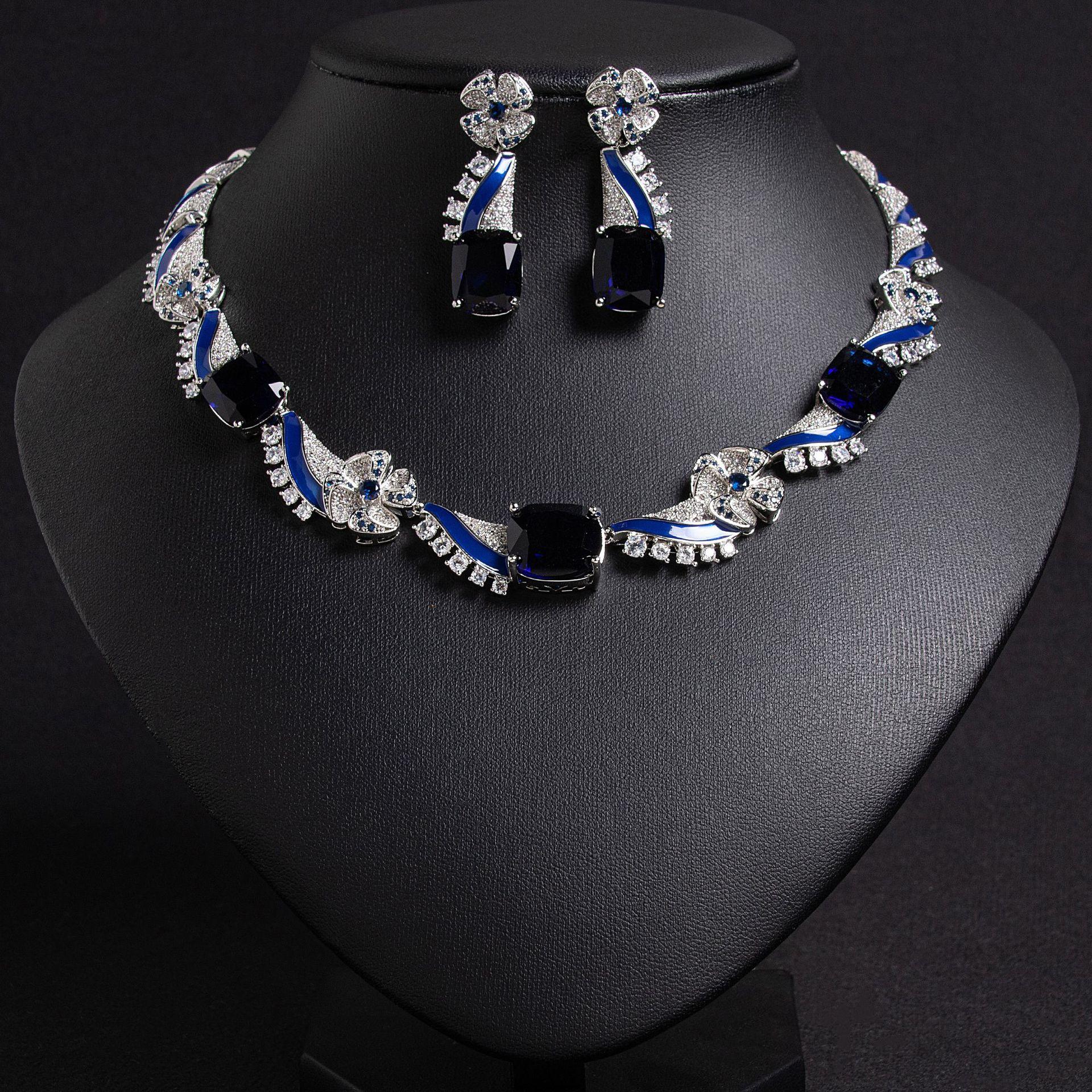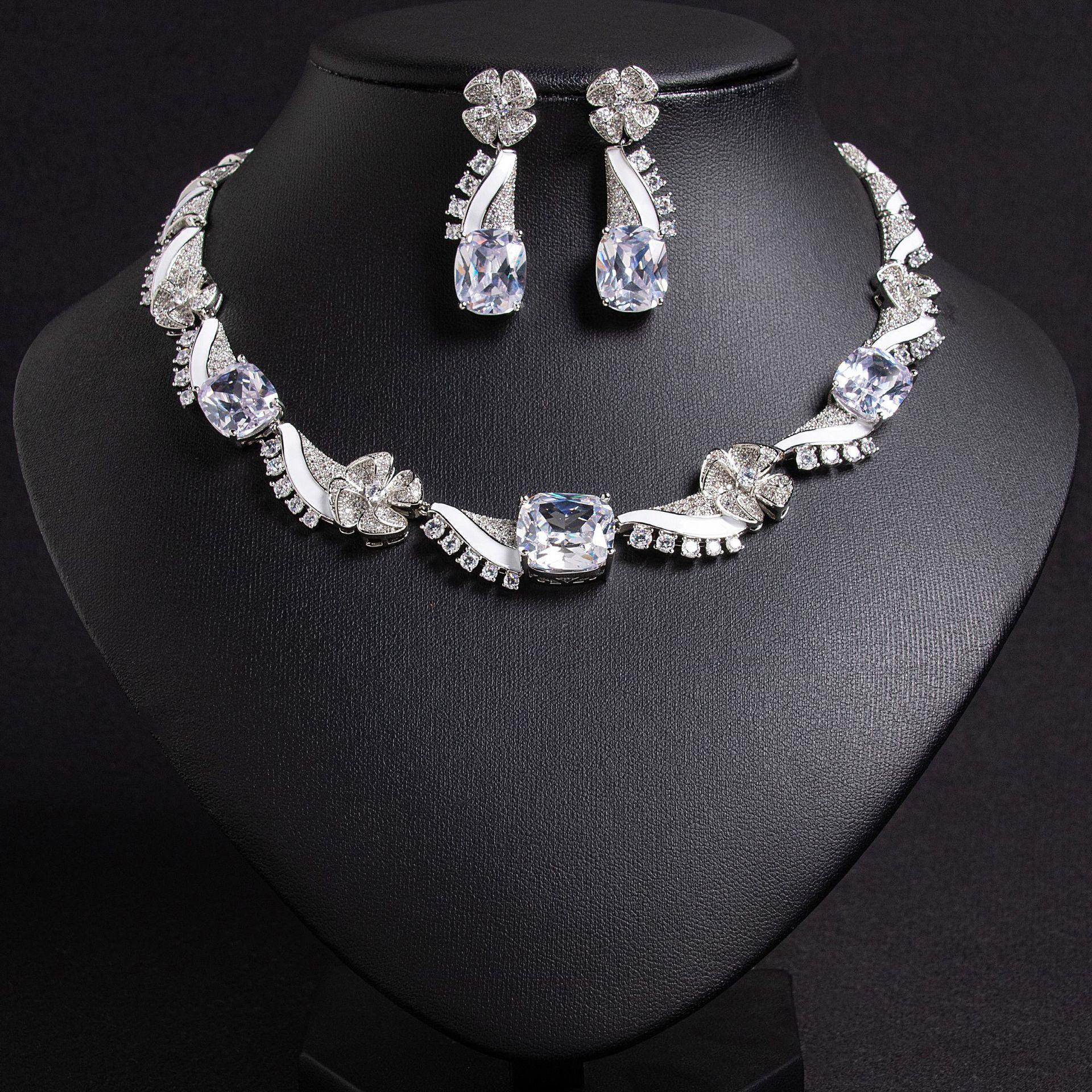 Compre Conjunto de Colar e Brincos de Zircônia Gota de Água Onda Popular Transfronteiriça Corrente de Clavícula Luxo Leve Joias de Temperamento Sofisticado Atacado no atacado no Joom.pro