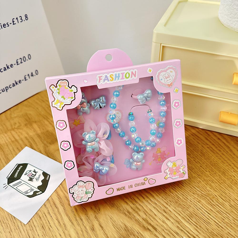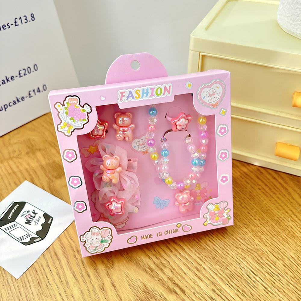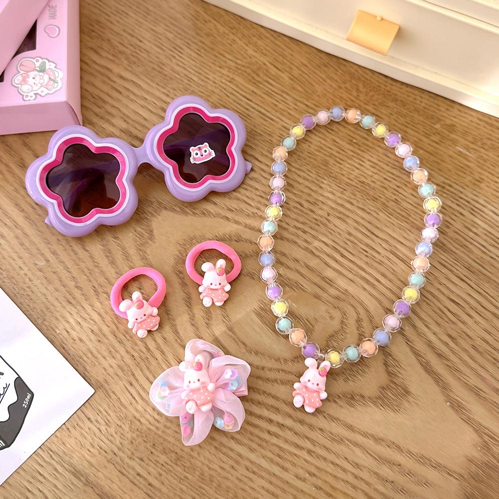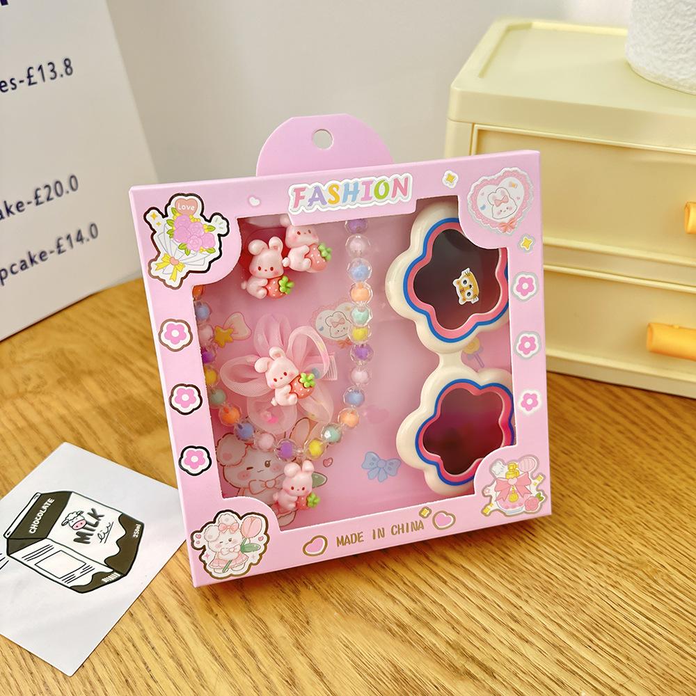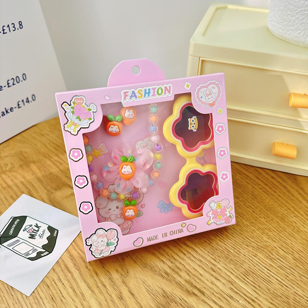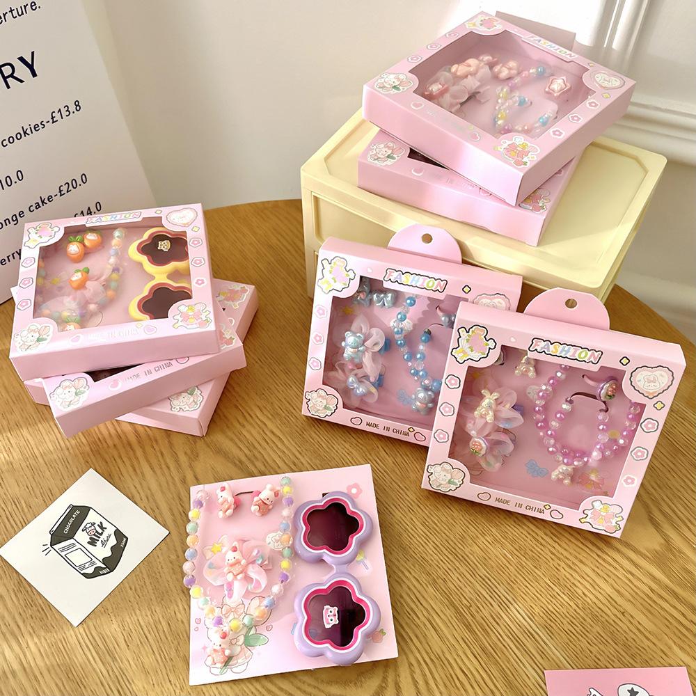 Conjunto de joias de princesa infantil, caixa de presente, desenho animado, coelho fofo, grampo de cabelo, acessórios para cabelo, colar de cor doce, joias