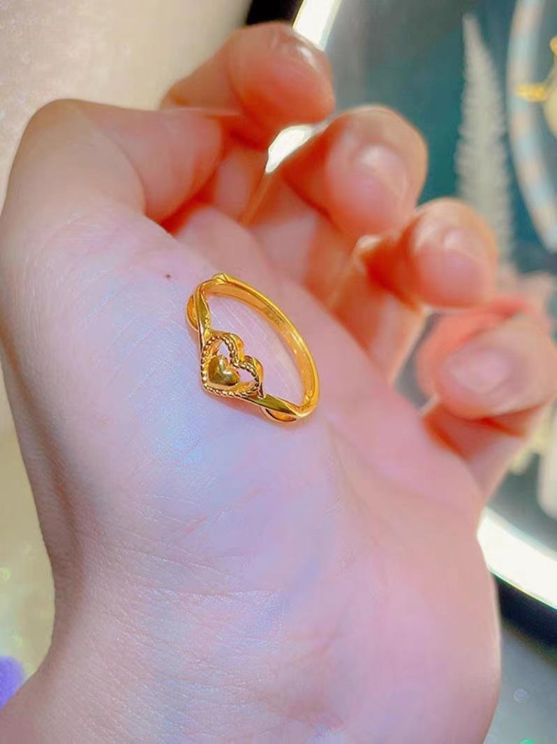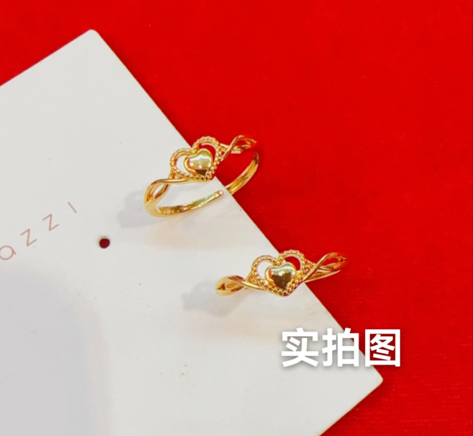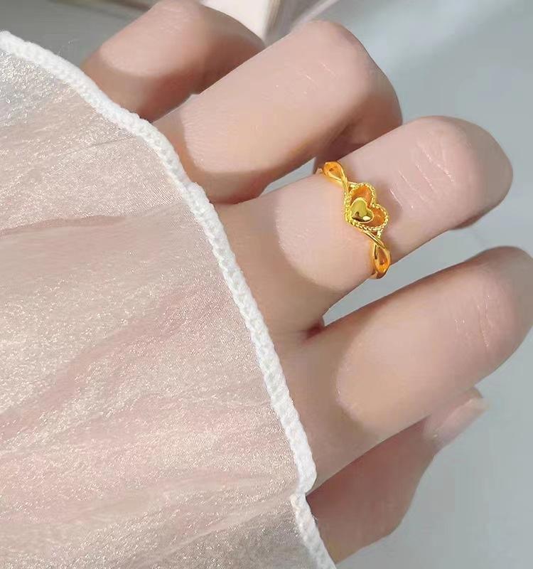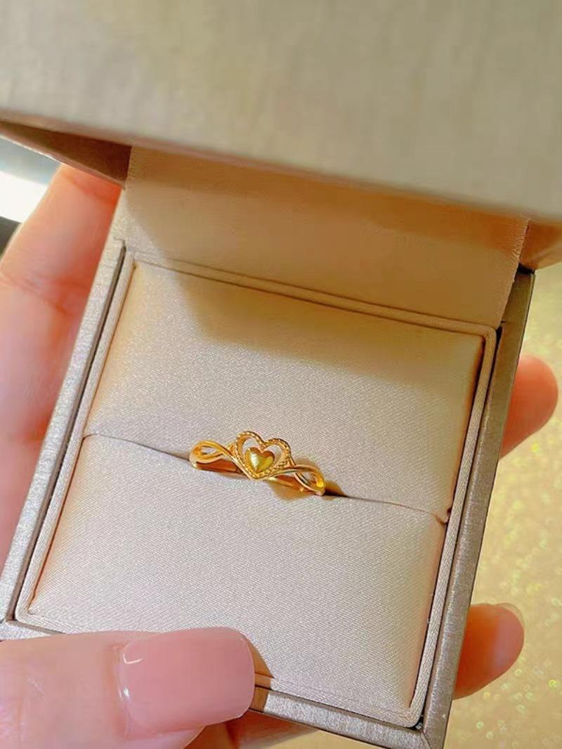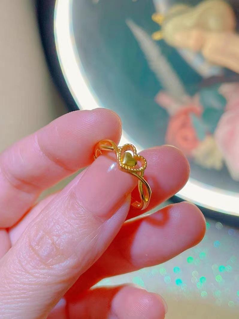Compre Anel de amor de ouro areia feminino latão banhado a ouro design de nicho coração a coração anel aberto luz luxo anel de coração dobrável no atacado no Joom.pro