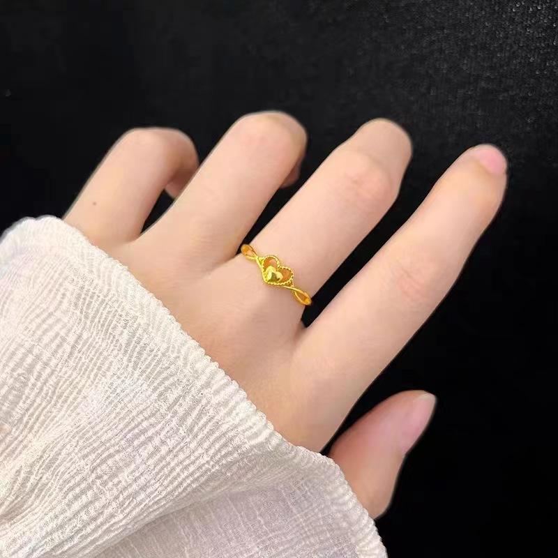 Anel de amor de ouro areia feminino latão banhado a ouro design de nicho coração a coração anel aberto luz luxo anel de coração dobrável