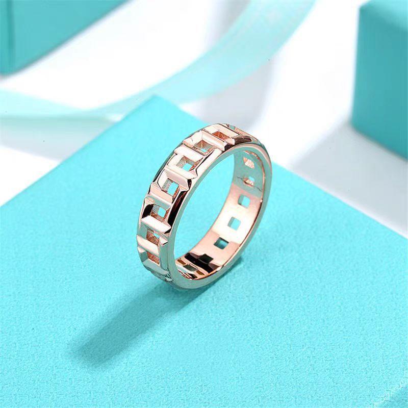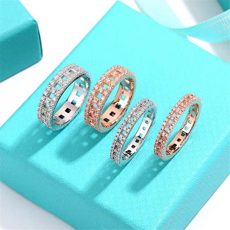 Novo anel duplo T oco, banhado a ouro 18k, anel de casal com diamantes, cheio de diamantes, anel de luxo da moda, Shaw Battle, mesmo estilo
