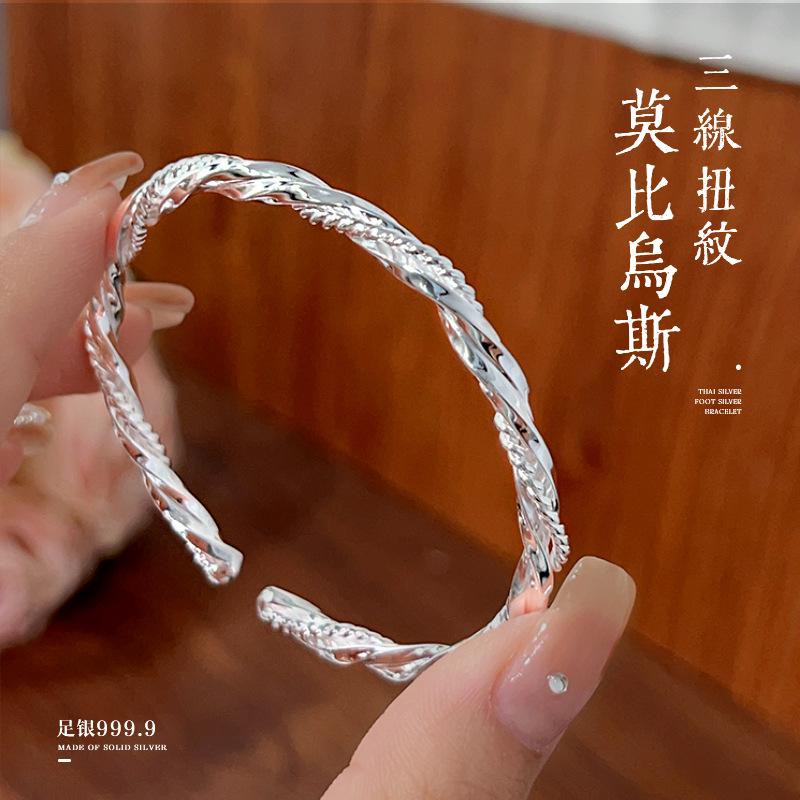 Compre Pulseira Mobius de Prata Esterlina 9999 Prata Feminina Twist Woven Twist Sólido Nicho Pulseira de Prata Pulseira Presente no atacado no Joom.pro