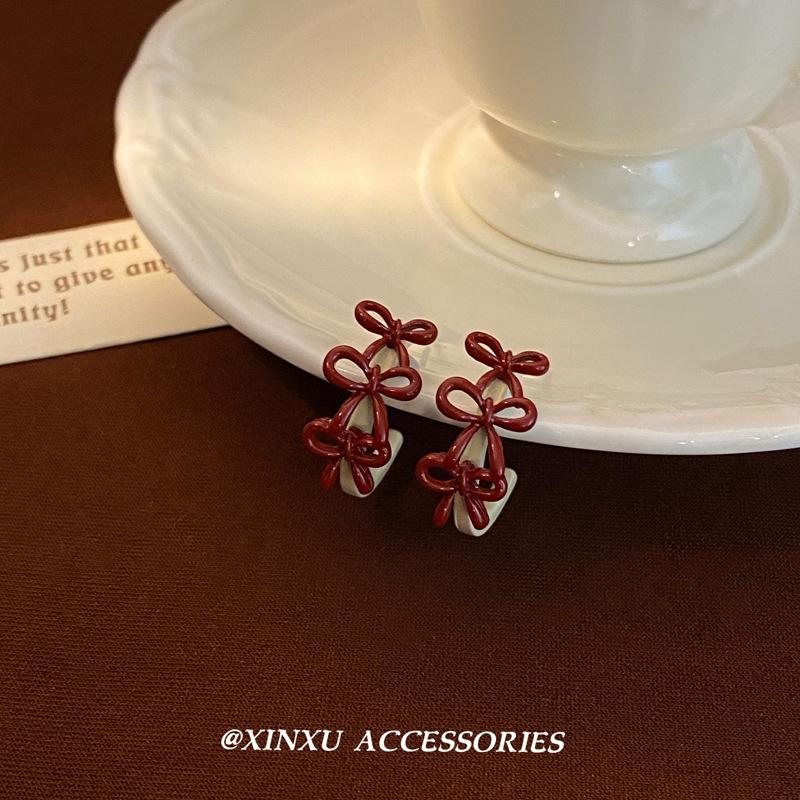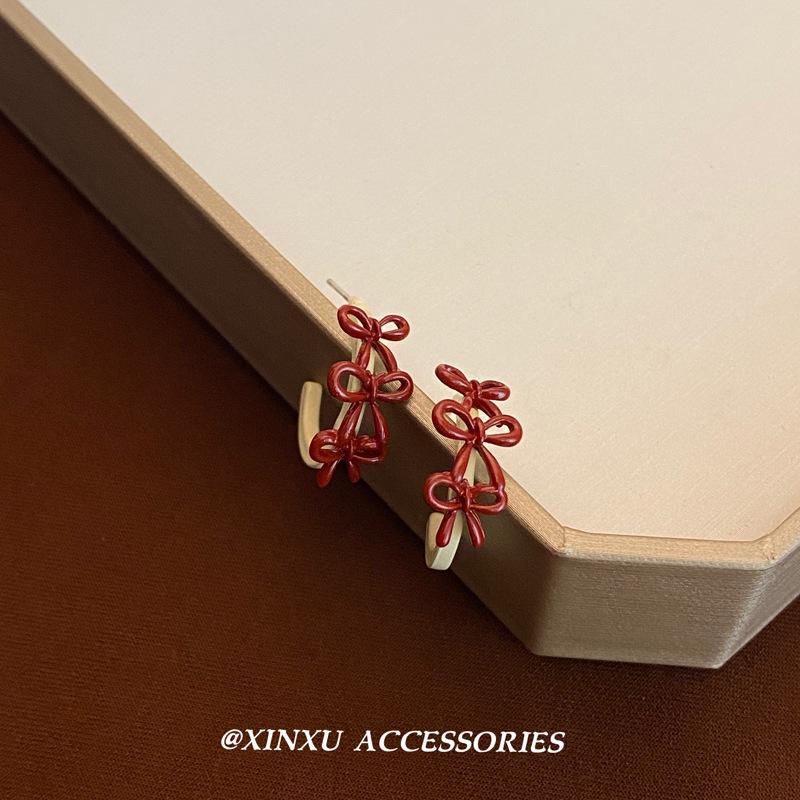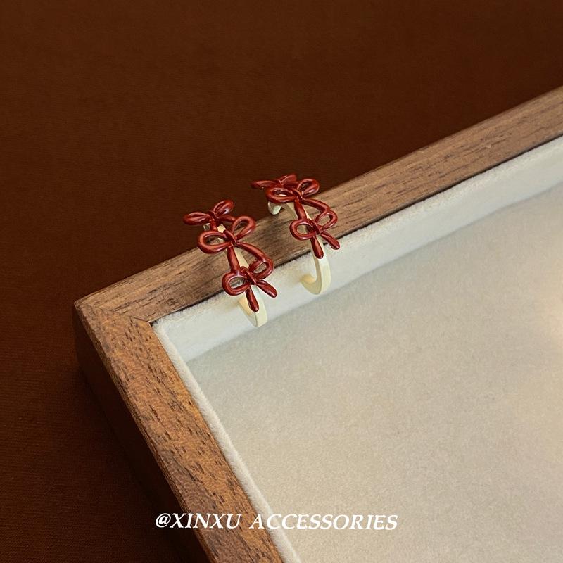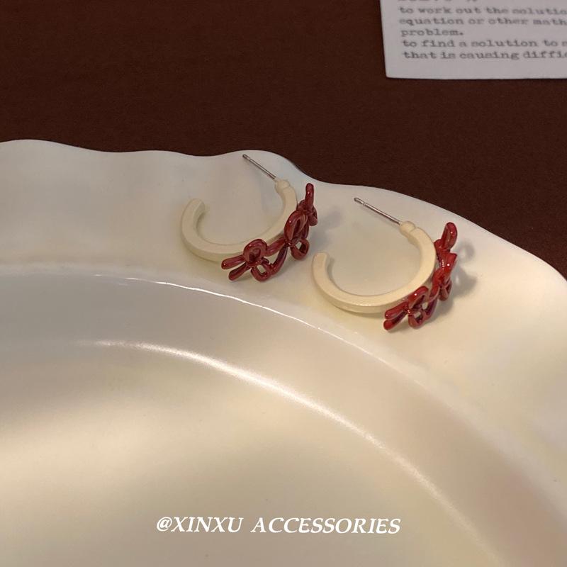 Compre Novo design de nicho brincos de laço vermelho feminino estilo coreano ins brincos em forma de C na moda brincos no atacado no Joom.pro