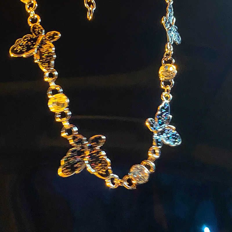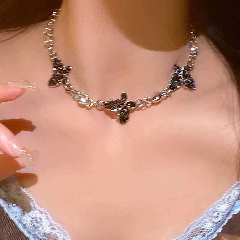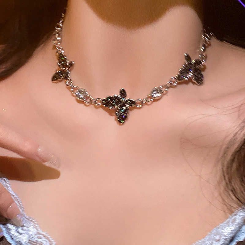 Fantasia Borboleta Strass Colar Feminino Europeu e Americano Niche Moda Elegante Cadeia de Pescoço Y2K Millennium Spice Girls Cyber Celebrity Clavícula Cadeia