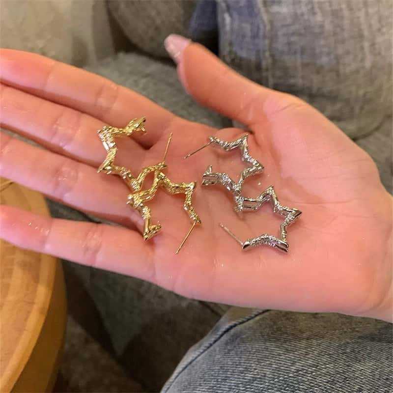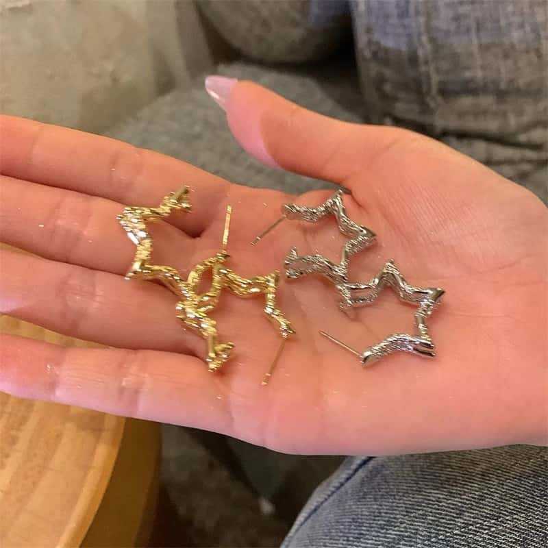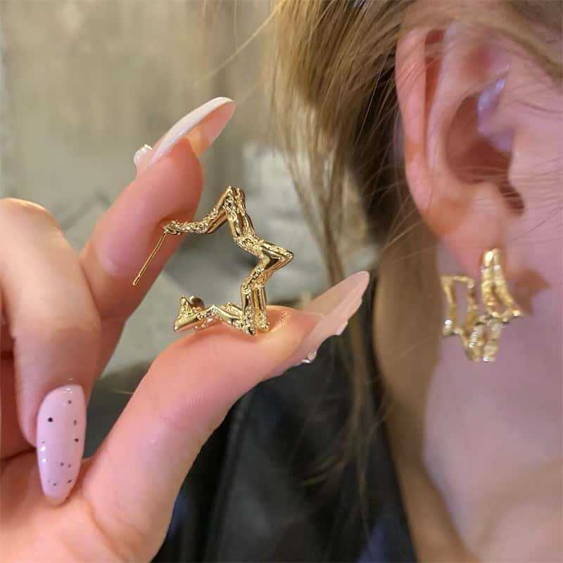 Compre Nicho Design Único Sentindo Brincos de Estrela de Cinco Pontas Feminino 2024 Novo Estilo Rosto Elegante Pequenos Brincos Elegantes Todos Combinam Brincos Distintivos no atacado no Joom.pro