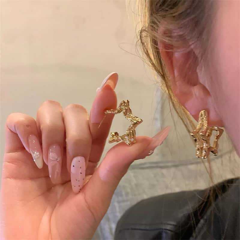Nicho Design Único Sentindo Brincos de Estrela de Cinco Pontas Feminino 2024 Novo Estilo Rosto Elegante Pequenos Brincos Elegantes Todos Combinam Brincos Distintivos