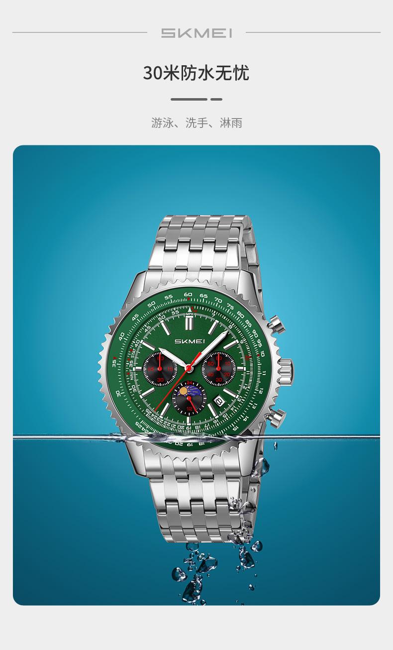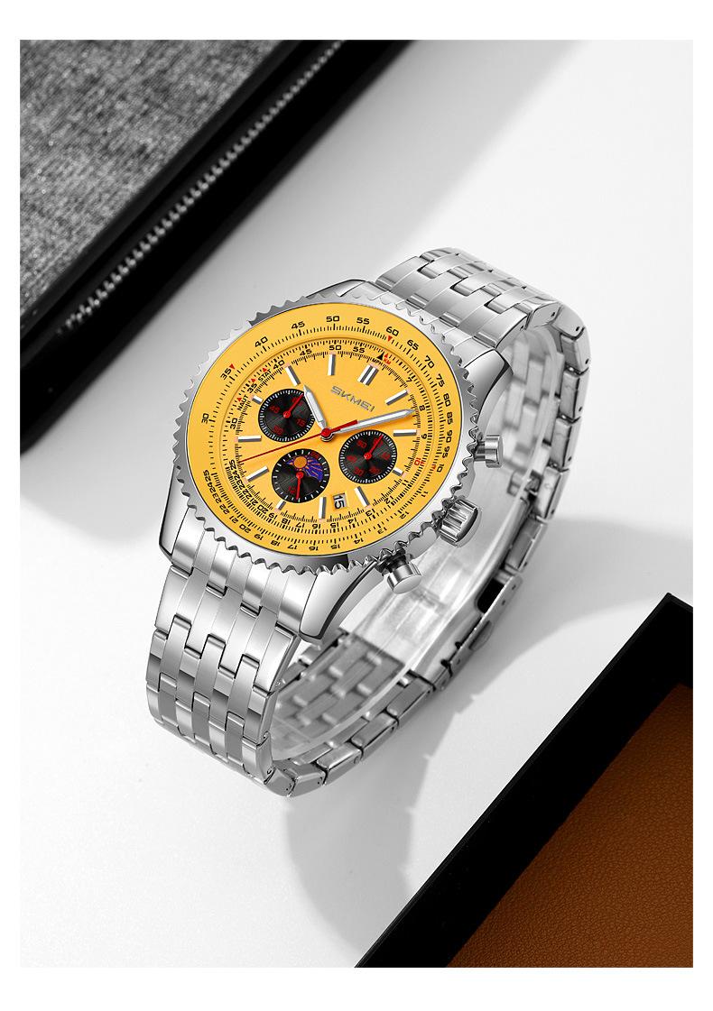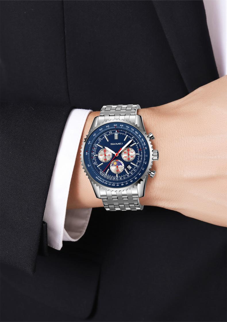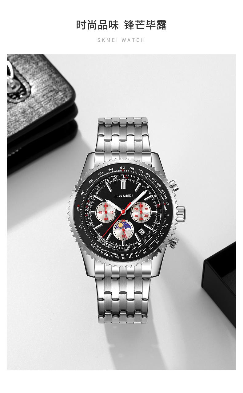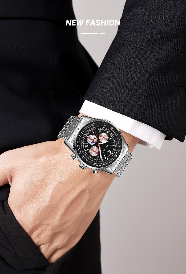 Relógio suíço masculino novo com pulseira de aço, relógio de quartzo multifuncional, explosões de comércio exterior ao vivo, uma geração de cabelos