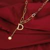 Amazon Xiyin Hot Selling D Letter Titanium Steel Necklace Pingente Feminino Europeu e Americano Moda Simples Clavícula Corrente Luxo Requintado