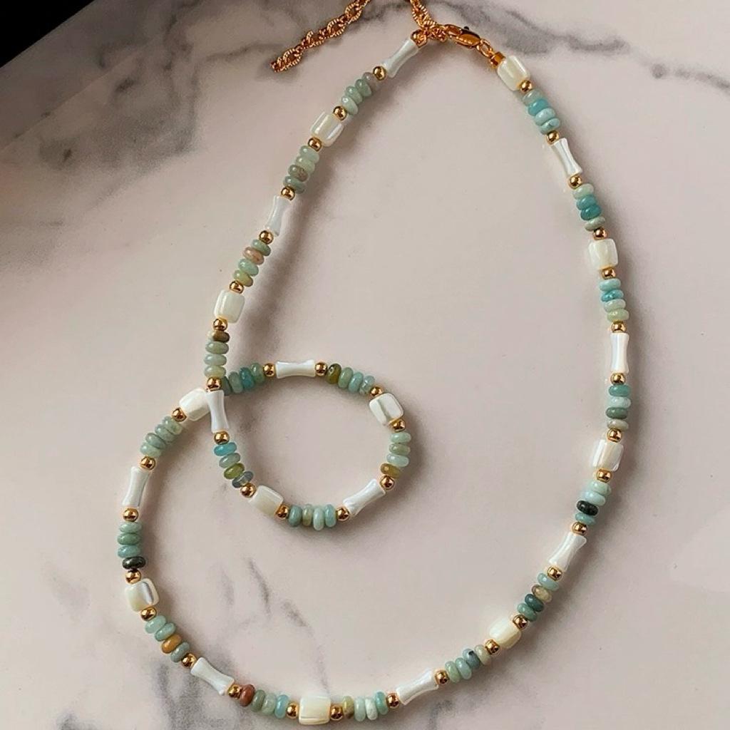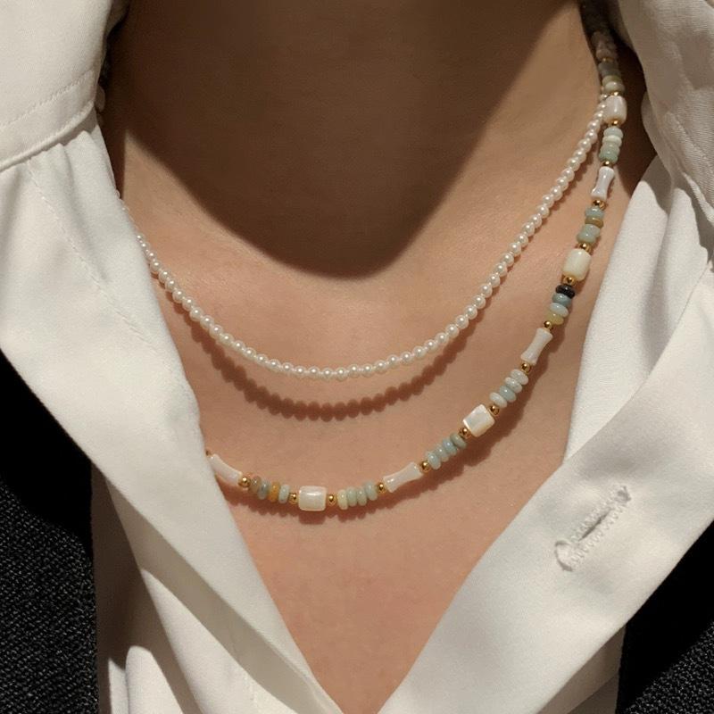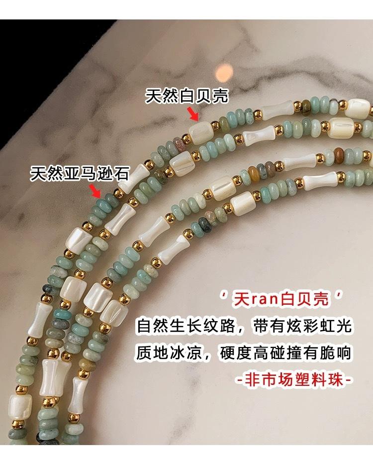 Compre Novo colar chinês verde natural de pedra bambu fritillaria com contas feminino metal cor combinando mix clavícula corrente temperamento colar corrente no atacado no Joom.pro
