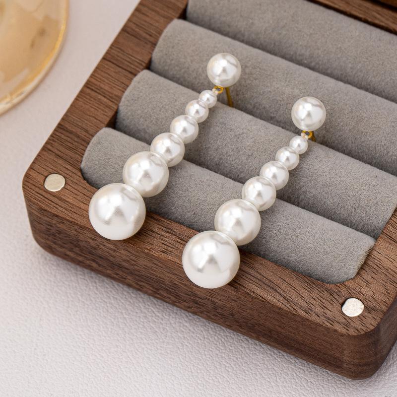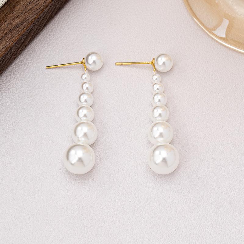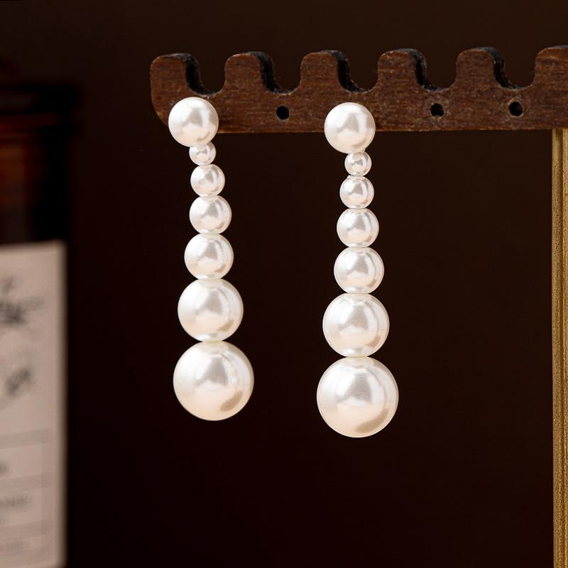 Compre Brincos de pérolas degradê de agulha de prata 925, brincos elegantes e suaves de alta qualidade, brincos de nicho leves e luxuosos, brincos franceses femininos no atacado no Joom.pro
