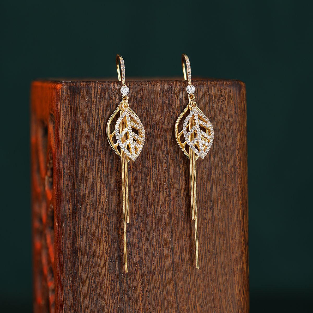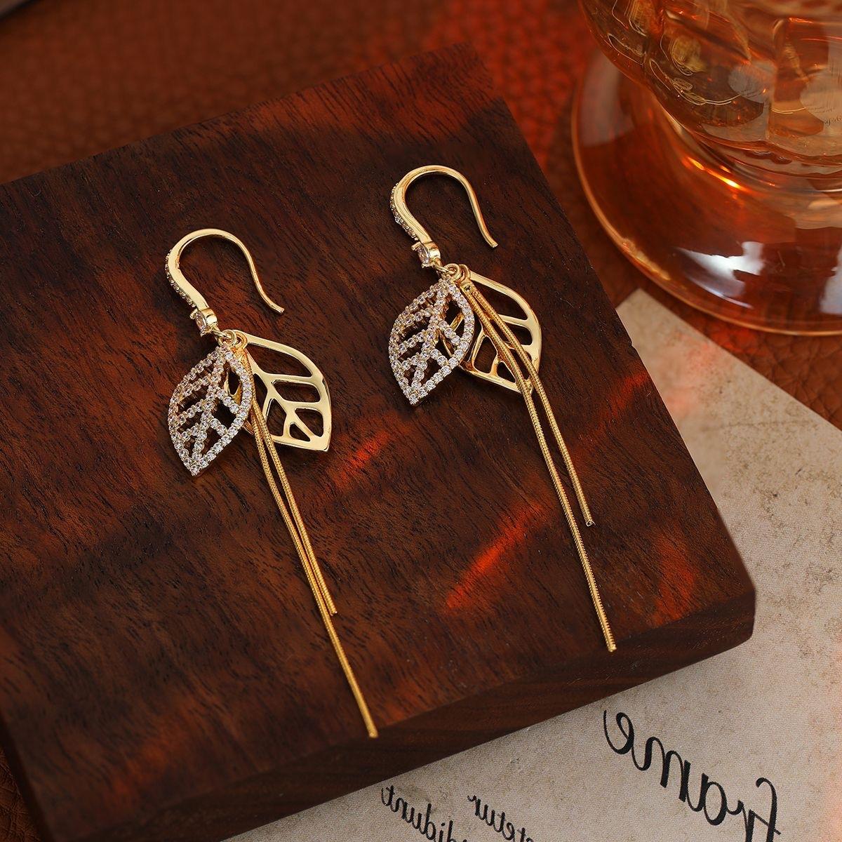 Elegante Folhas Ocas Longo Internet Celebridade Brincos Moda High-end Super Fada Borla Brincos