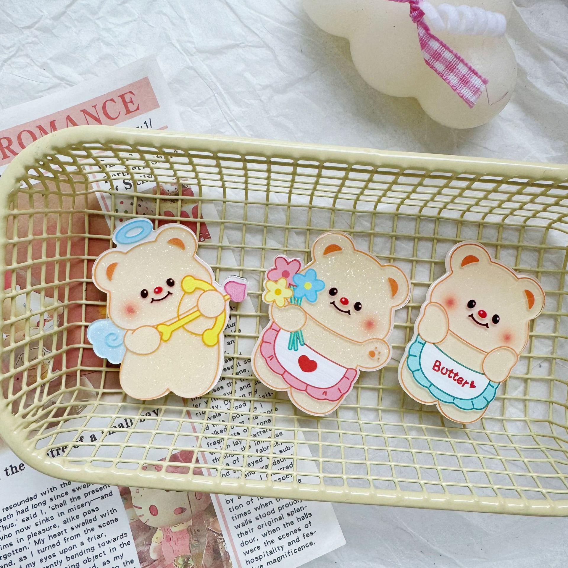 Compre Desenho animado criativo urso de manteiga grampo de cabelo doce fofo menina franja clipe lateral clipe crianças estudante grampo de cabelo acessórios para cabelo no atacado no Joom.pro