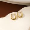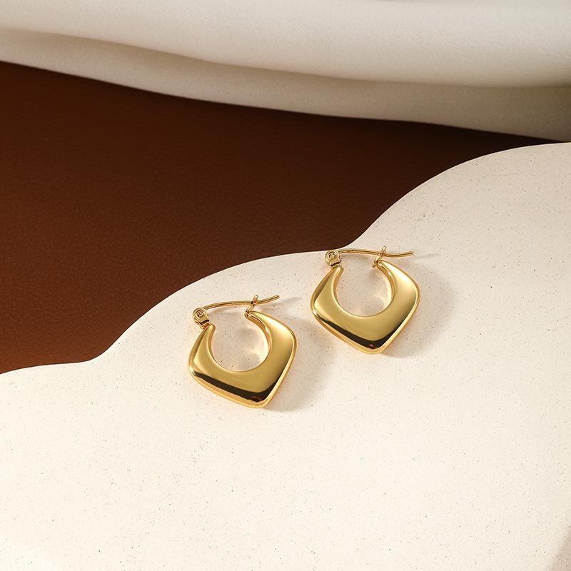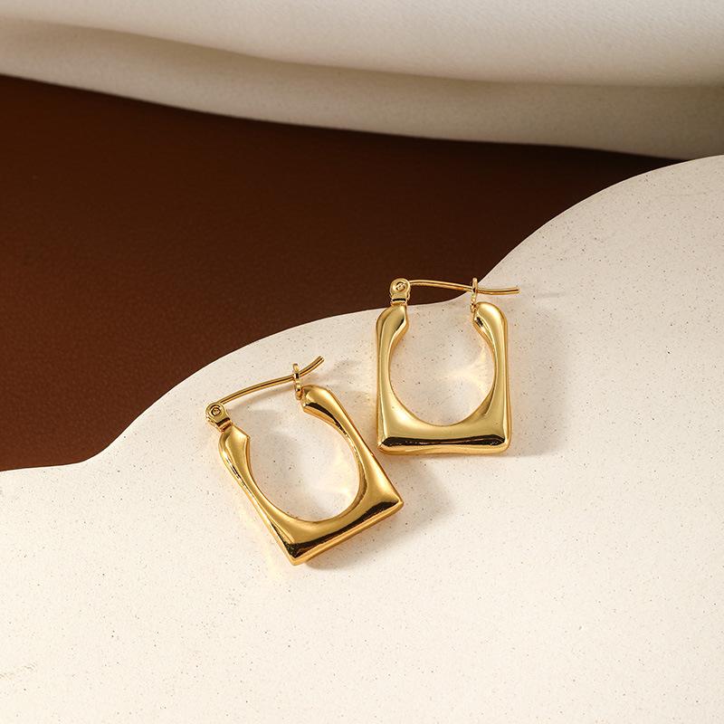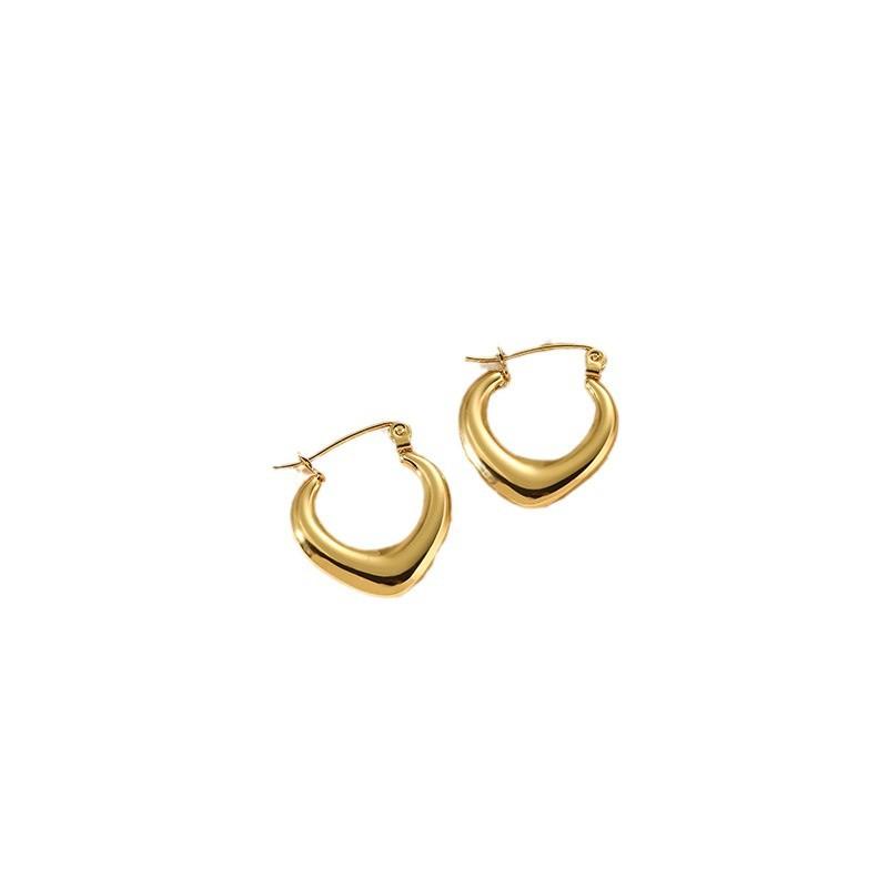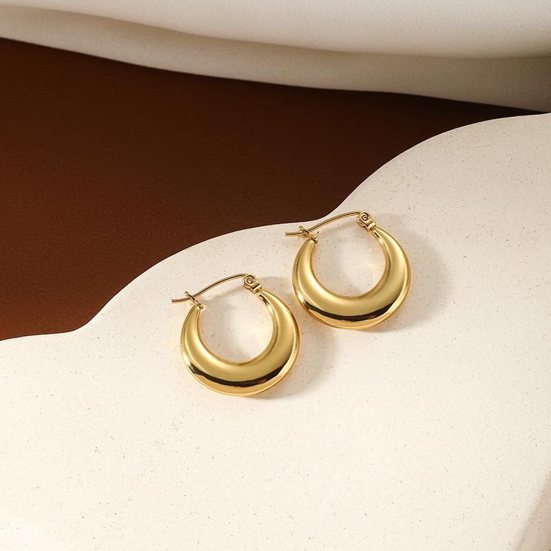 Brincos Simples de Aço Inoxidável Banhados a Ouro 18K de Alto Nível Retrô Preguiçosos Estilo Francês Brincos de Círculo de Nicho para Mulheres