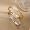Pulseira de tira oca simples europeia e americana, com fivela de diamante de argila, joias de aço inoxidável para mulheres usarem