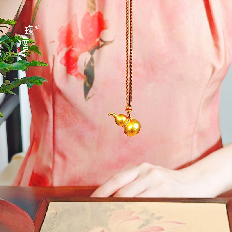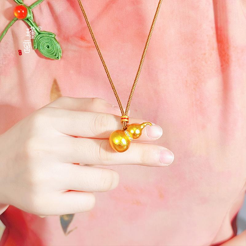 Compre Jin Yan Lin Er Mesmo Estilo Chinês Cabaça Casal Método Antigo Colar Pingente Cabaça Dourada Corrente De Lã Pingente Fulu no atacado no Joom.pro