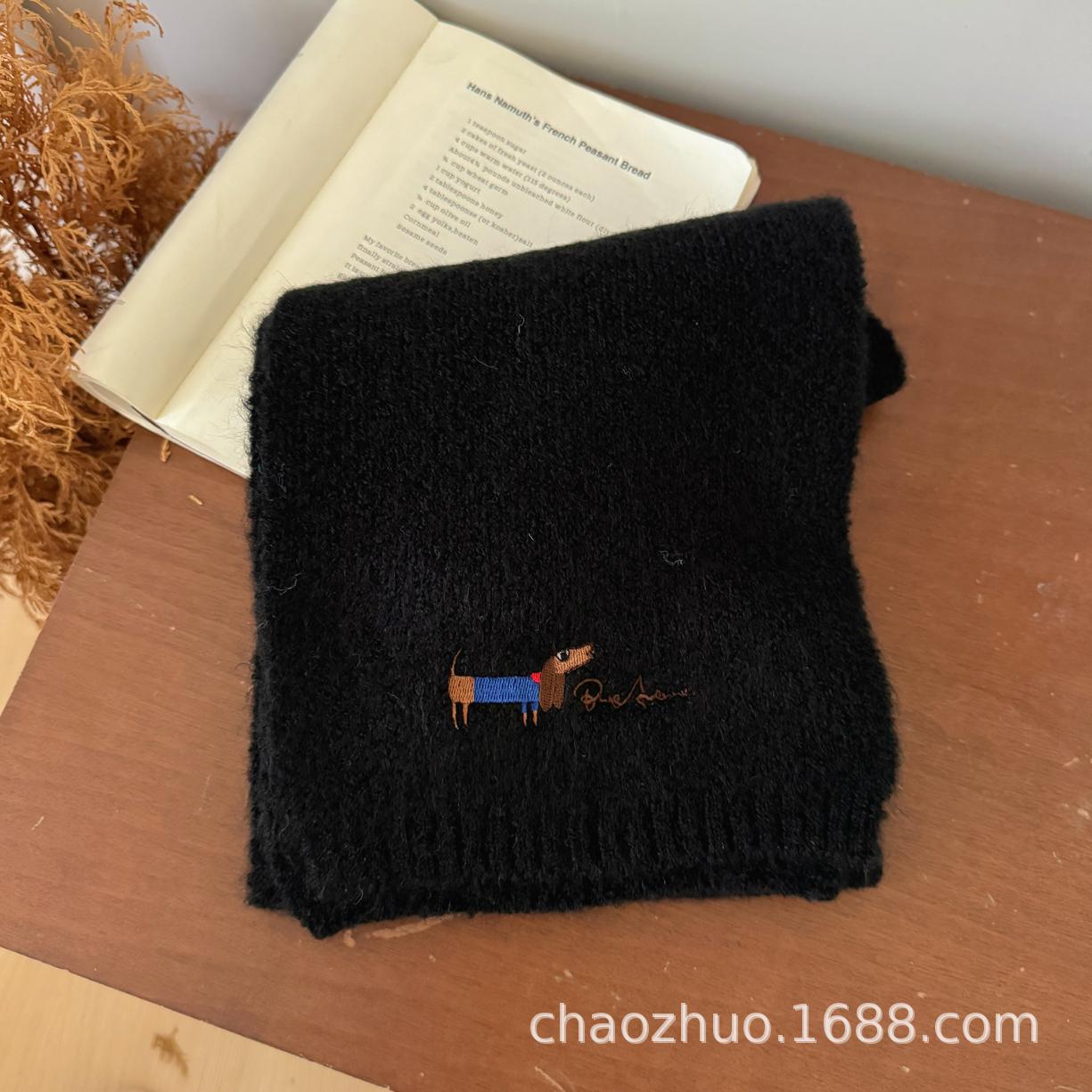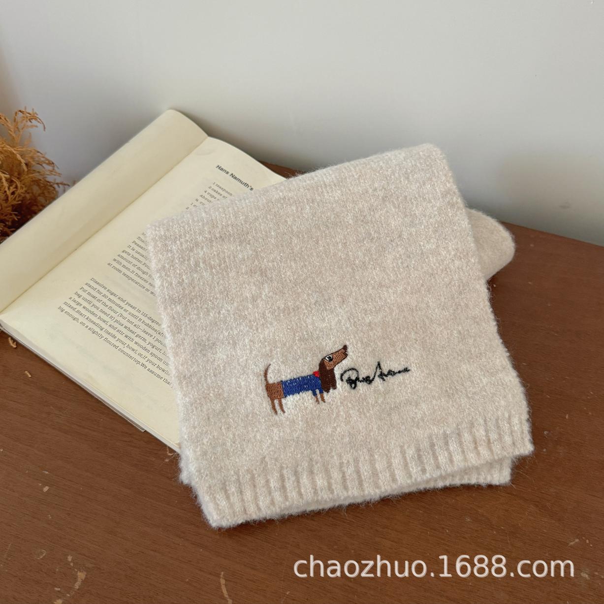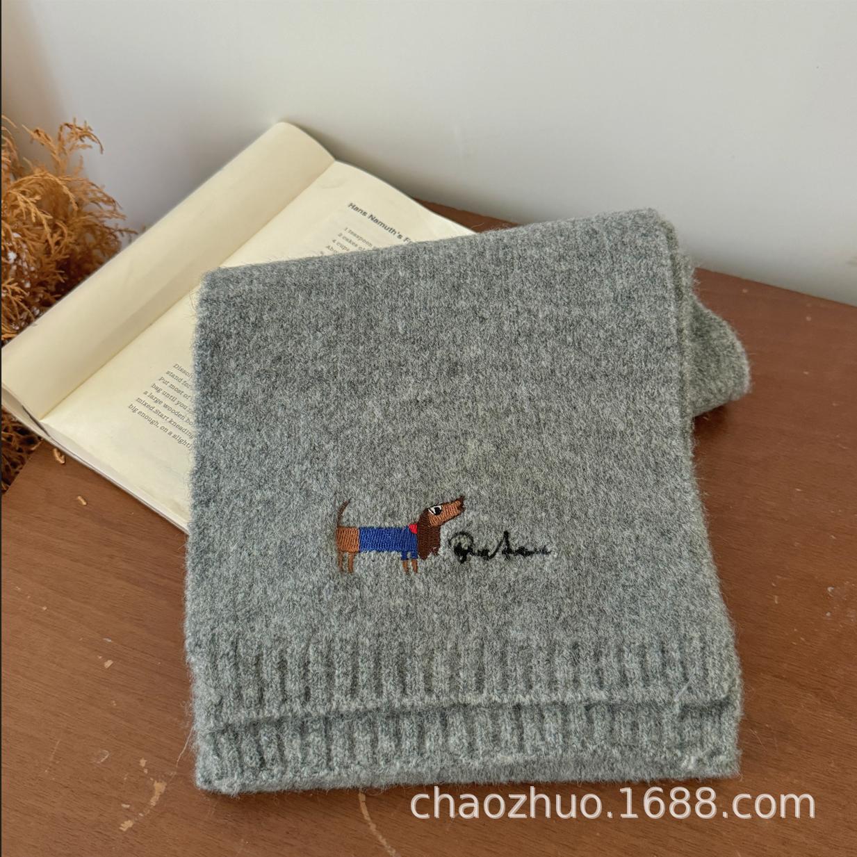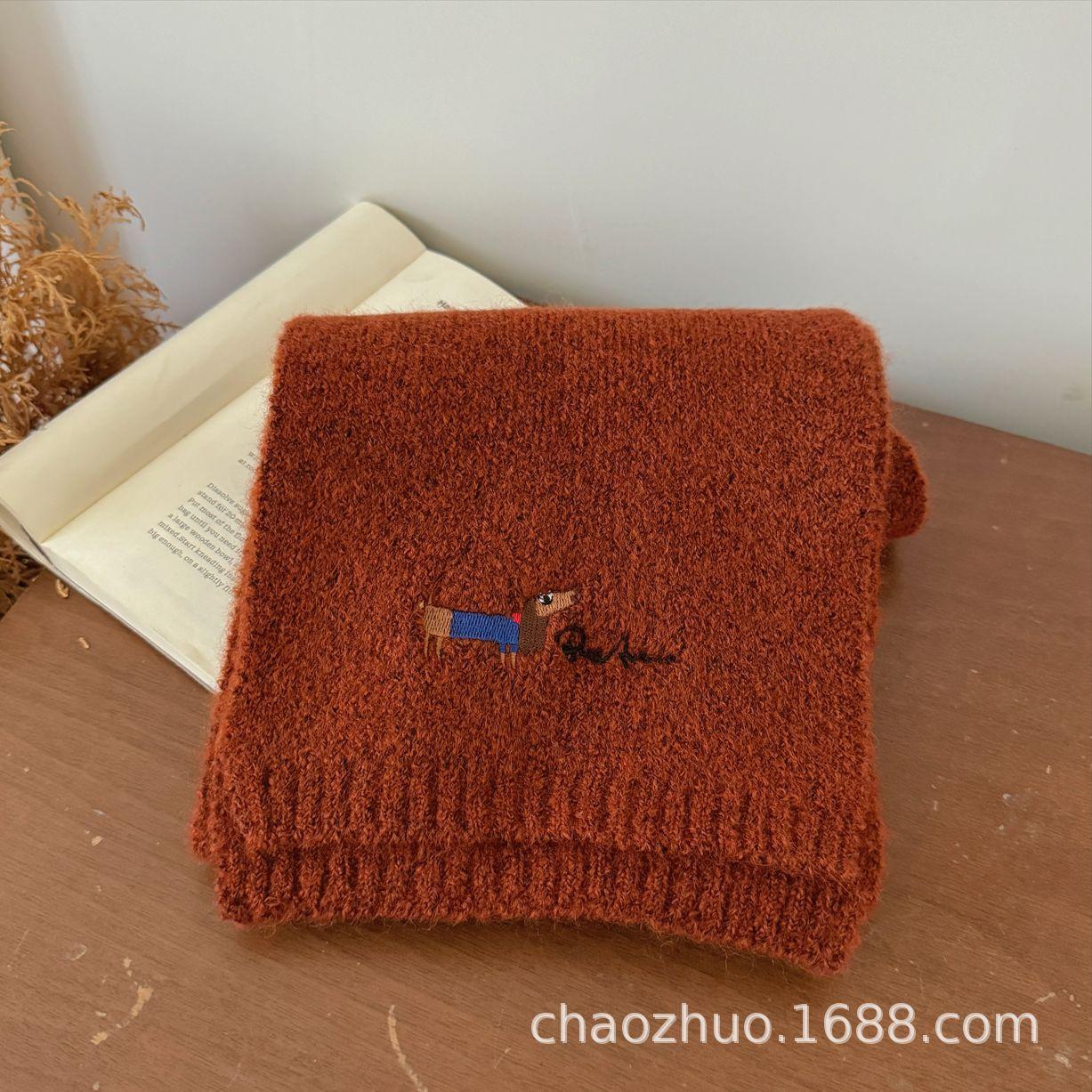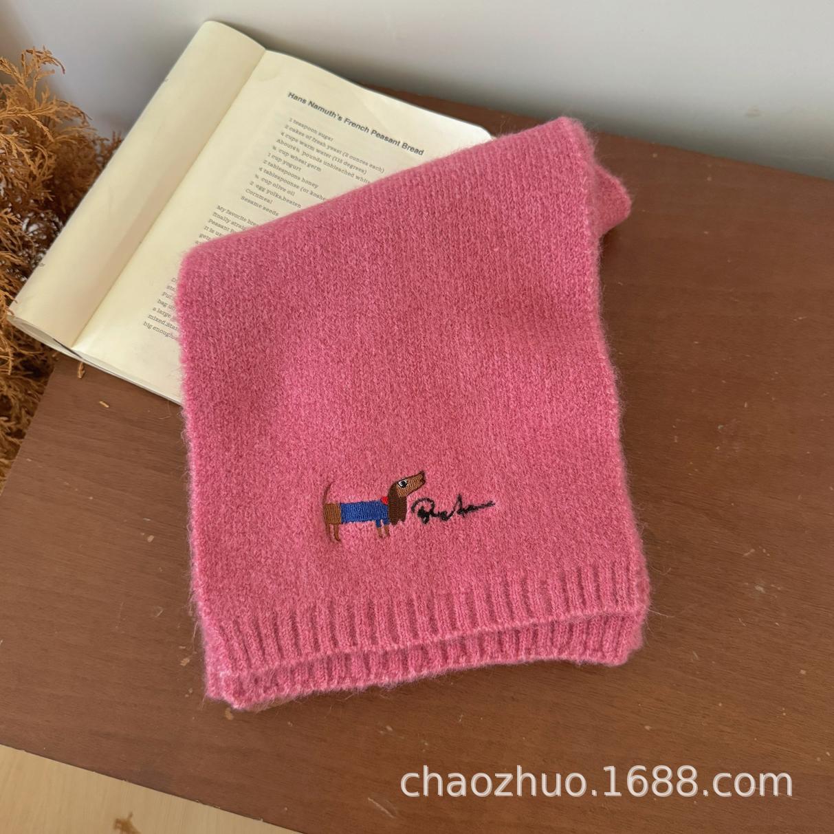Cachecol Infantil Outono e Inverno Meninos e Meninas Cor Sólida Cachorrinho Bordado Cachecol Versátil