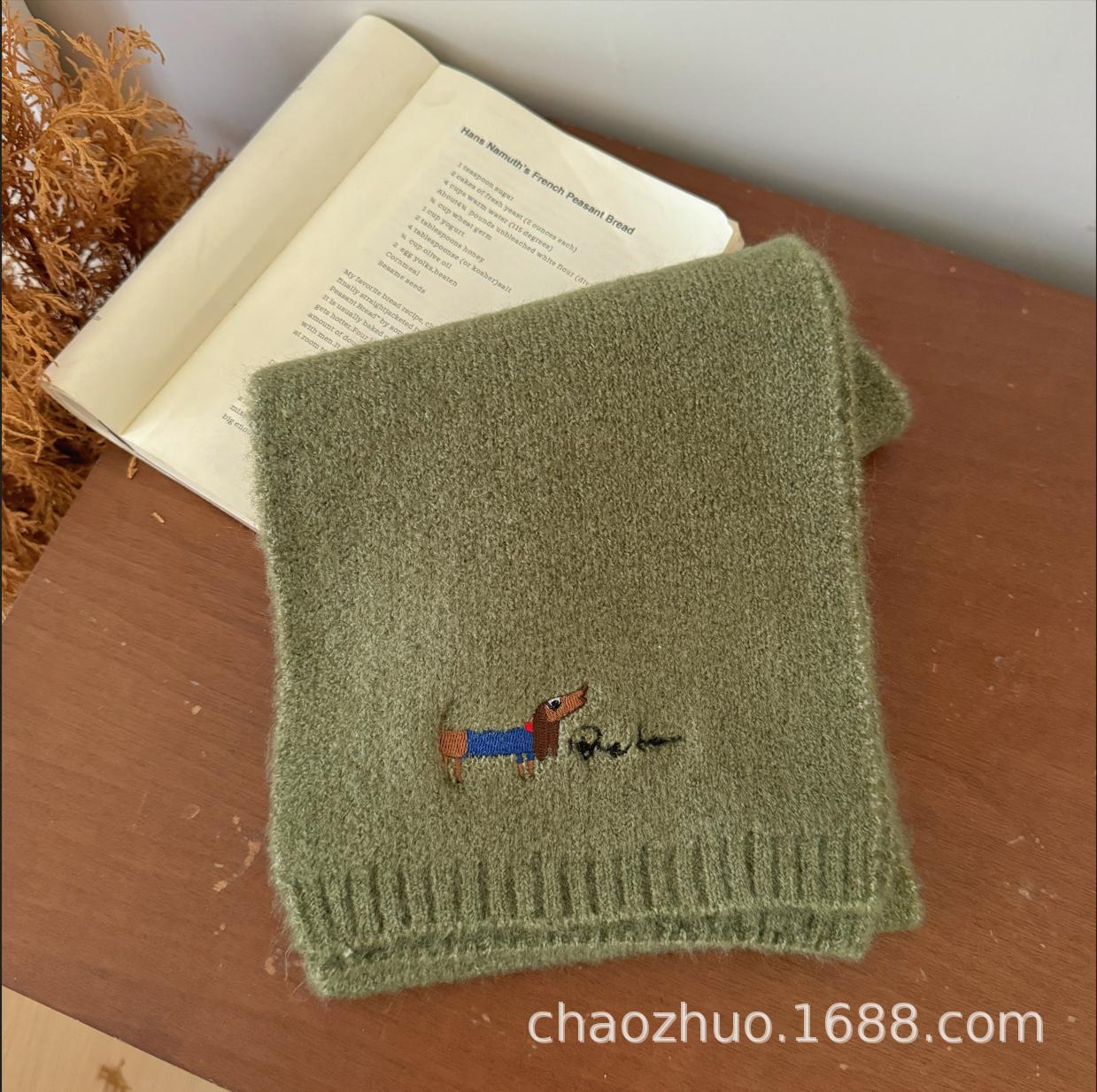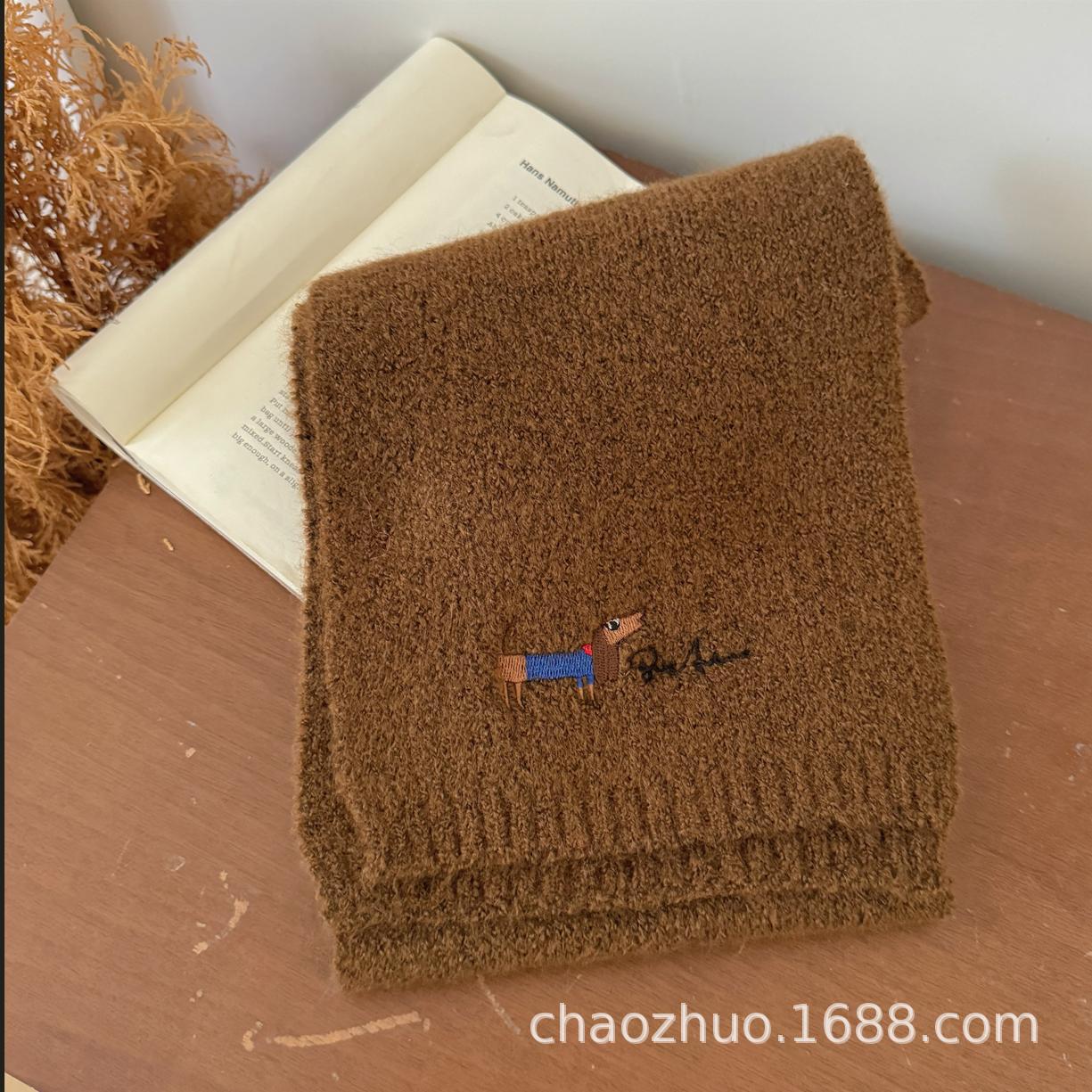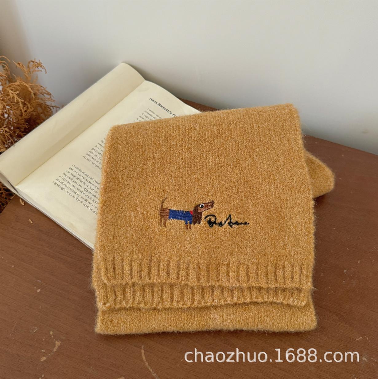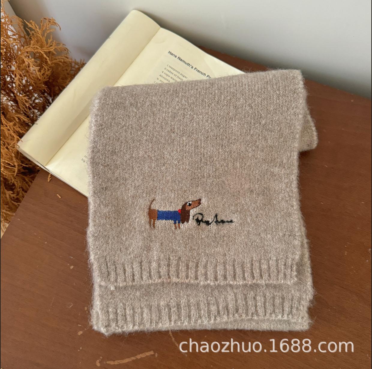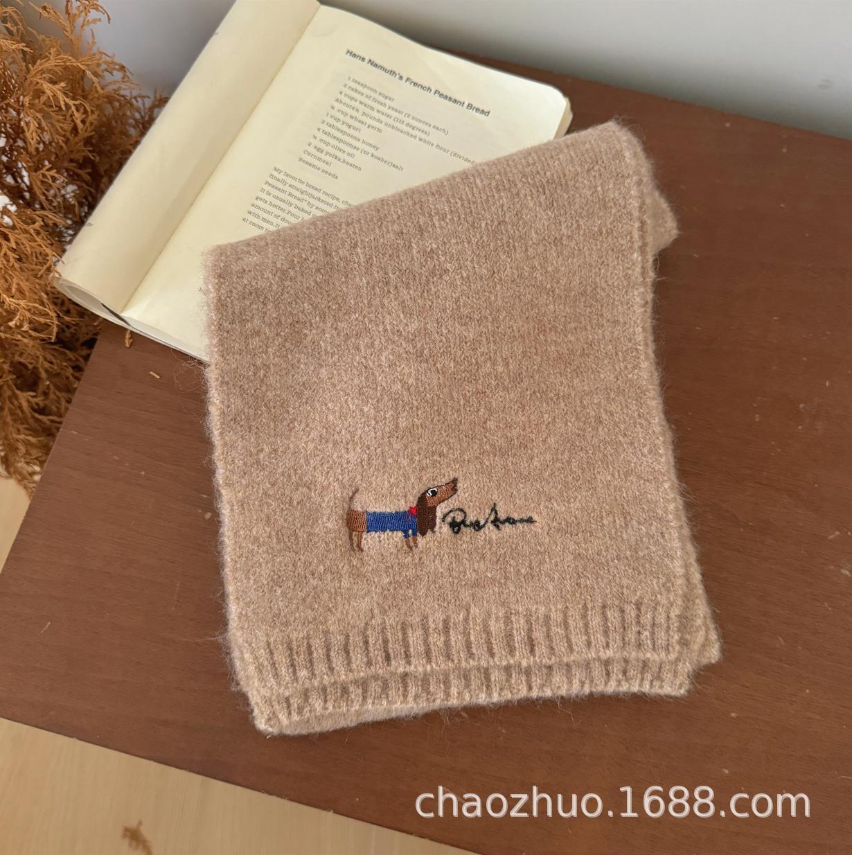 Cachecol Infantil Outono e Inverno Meninos e Meninas Cor Sólida Cachorrinho Bordado Cachecol Versátil