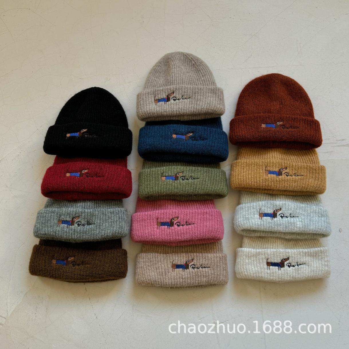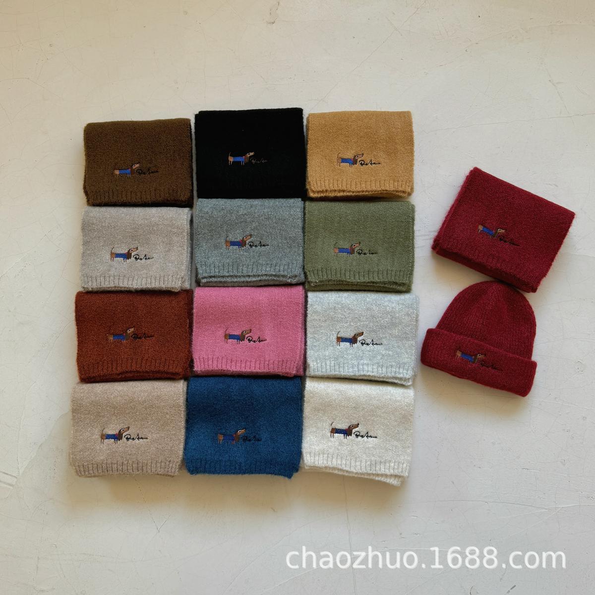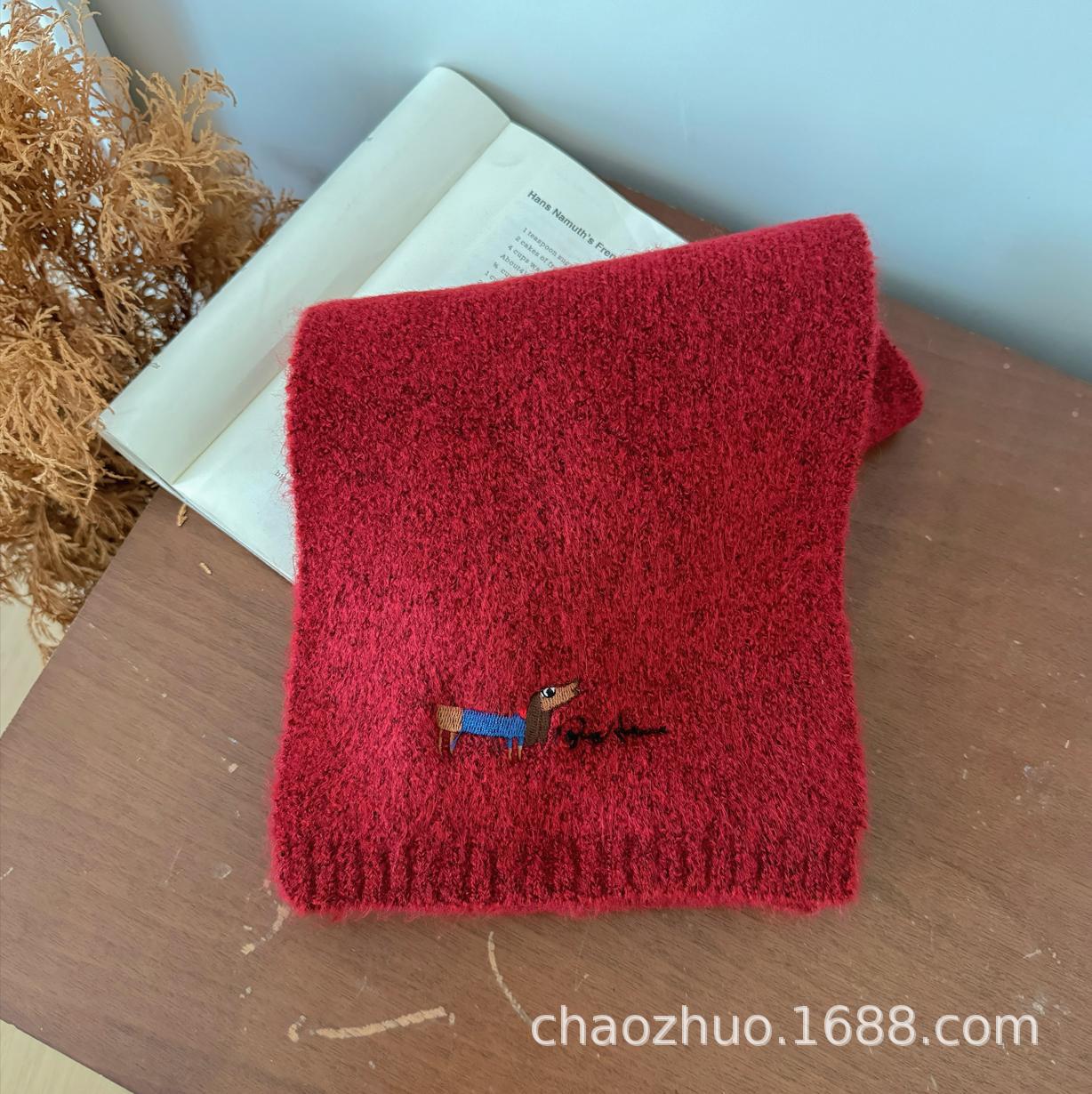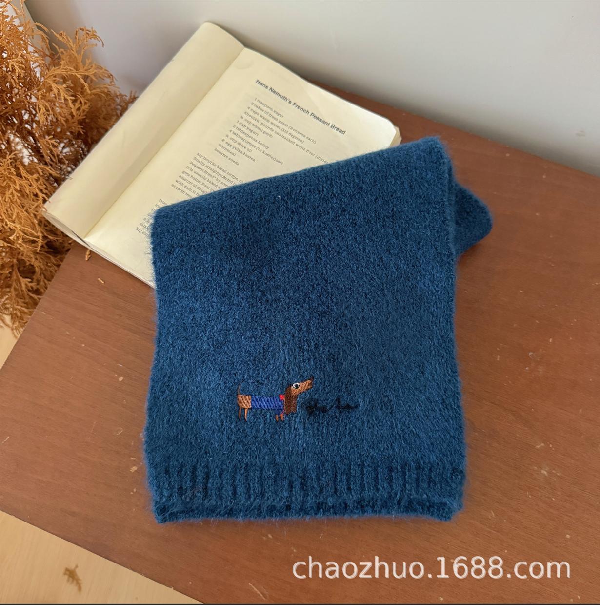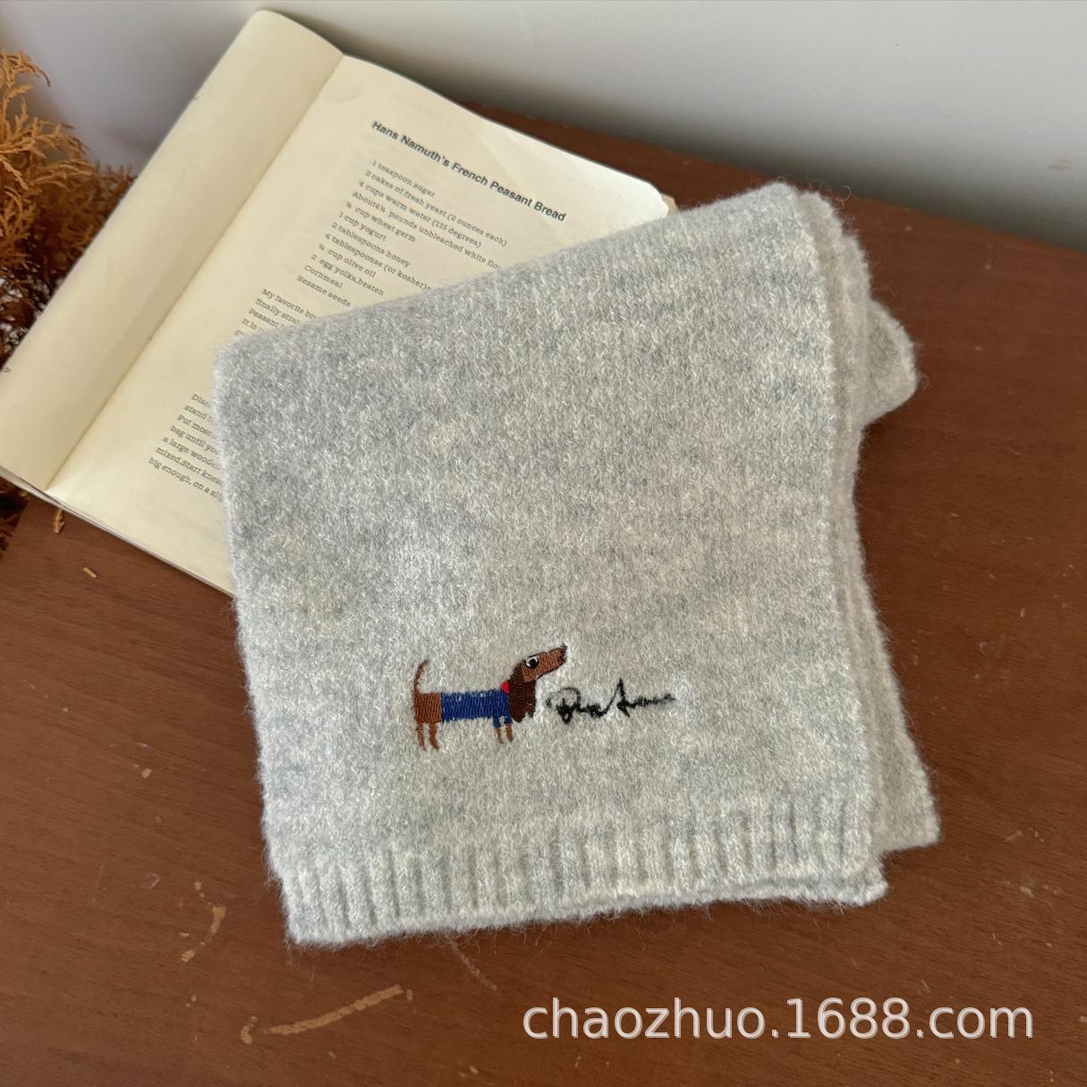 Cachecol Infantil Outono e Inverno Meninos e Meninas Cor Sólida Cachorrinho Bordado Cachecol Versátil
