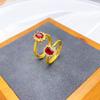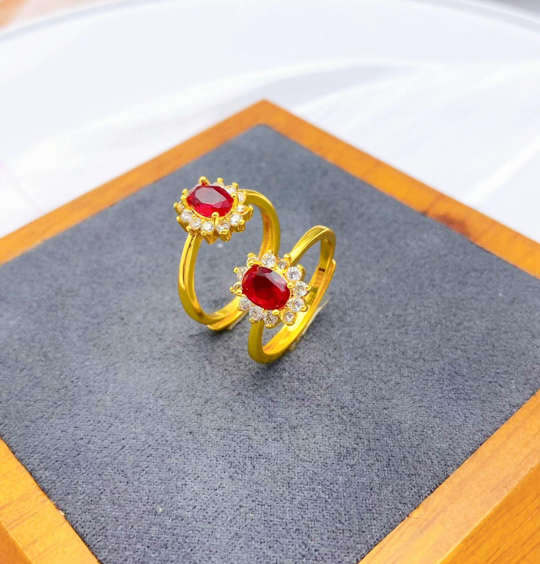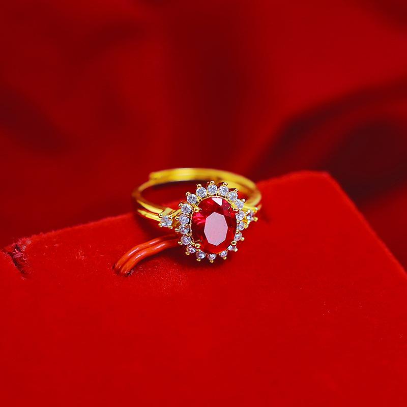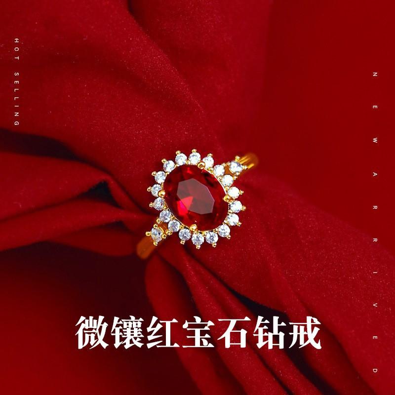 Anel de Rubi Feminino de Joia Antiga Banhada a Ouro, Luxo Leve com Sensação de Alta Qualidade, Diamantes Micro-Cravados em Forma de Ovo, Banhado a Oval, Presente para Namorada