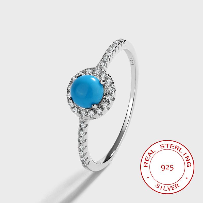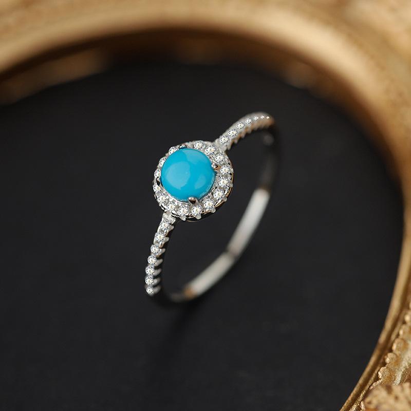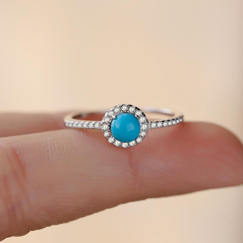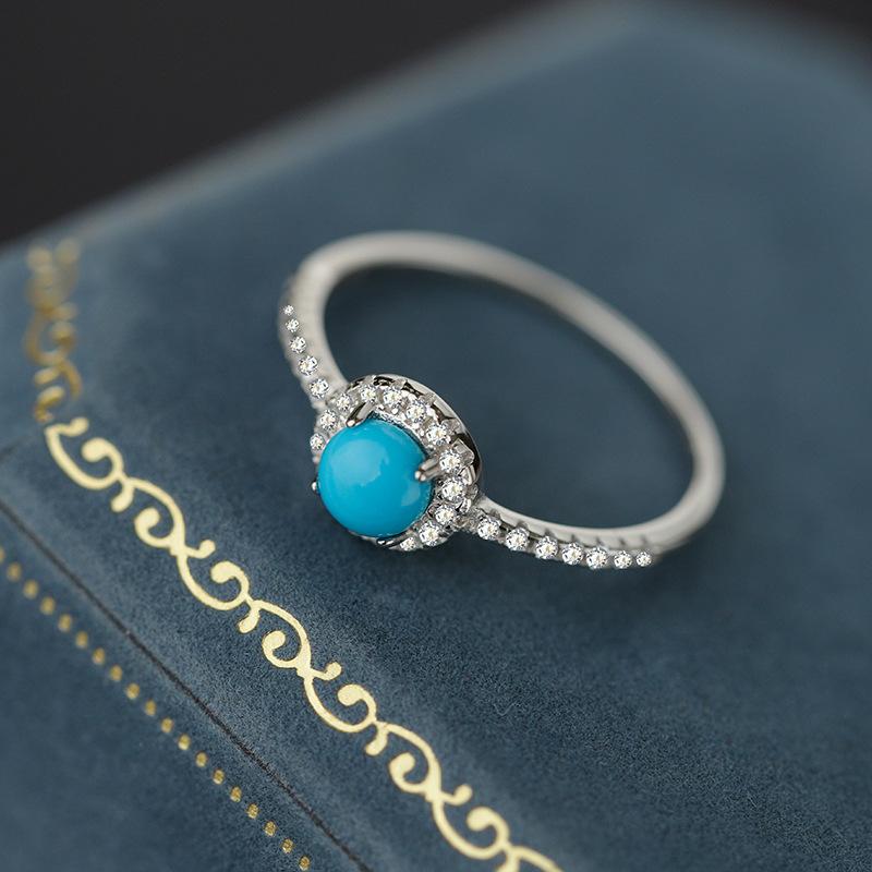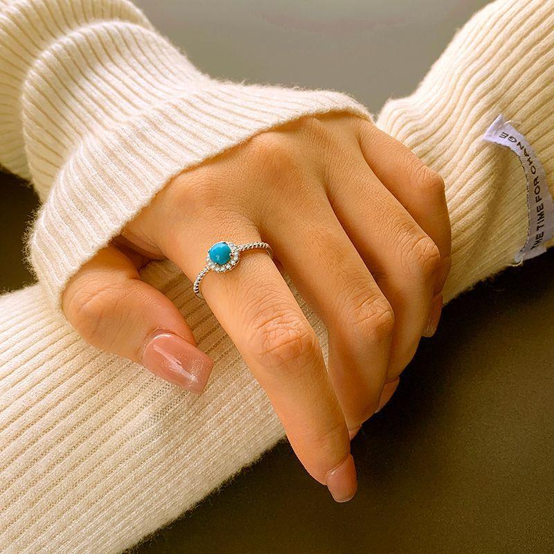 Compre S925 Prata Esterlina Incrustada Azul Turquesa Anel Feminino Nicho Design Sense Moda Simples Estilo Coreano Elegante Ins Trendy no atacado no Joom.pro
