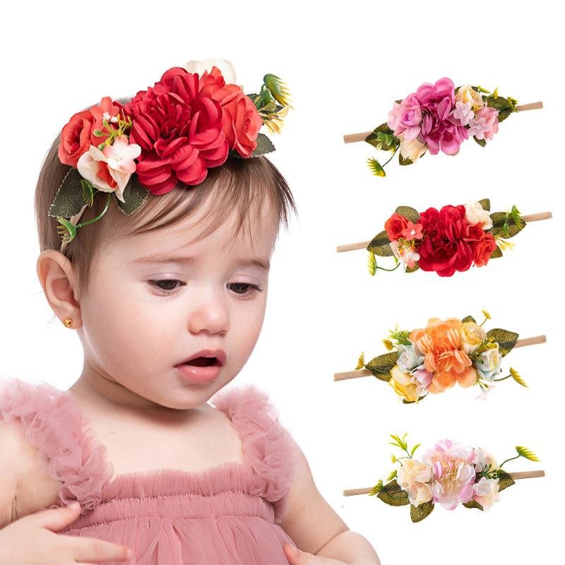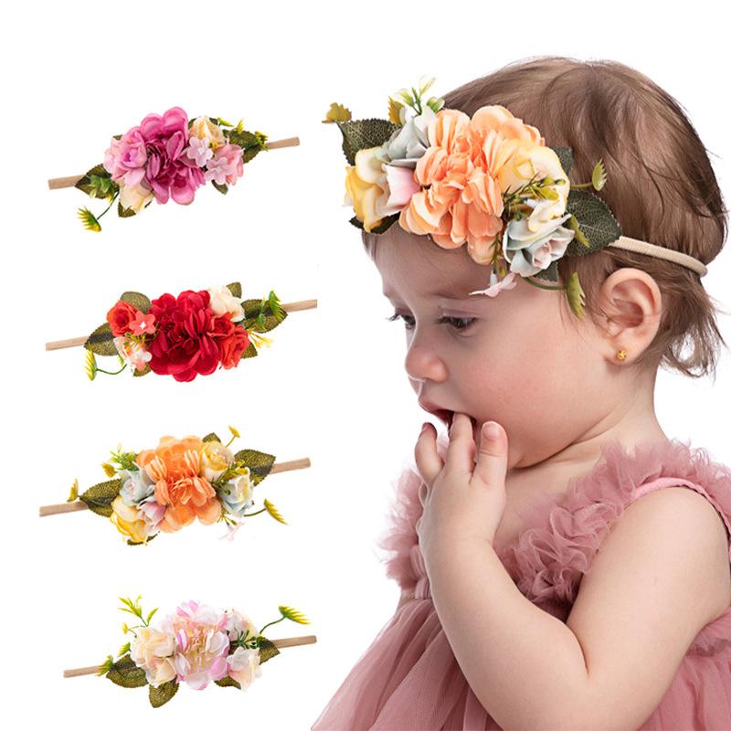 Explosões transfronteiriças cinto de cabelo infantil pequena princesa foto acessórios de cabelo fofos simulação de flores elásticas de alta bebê cocar atacado