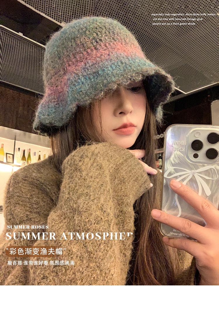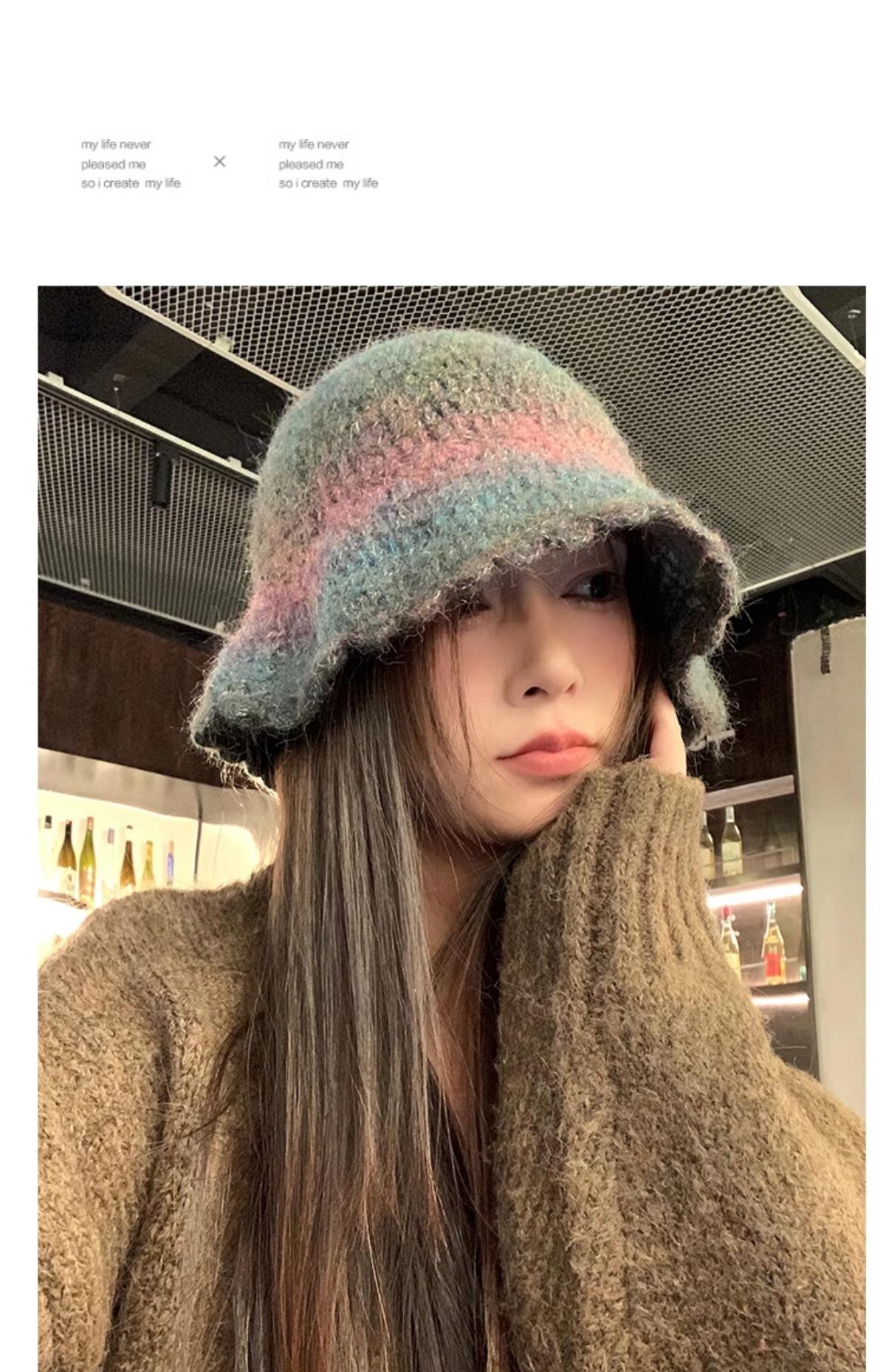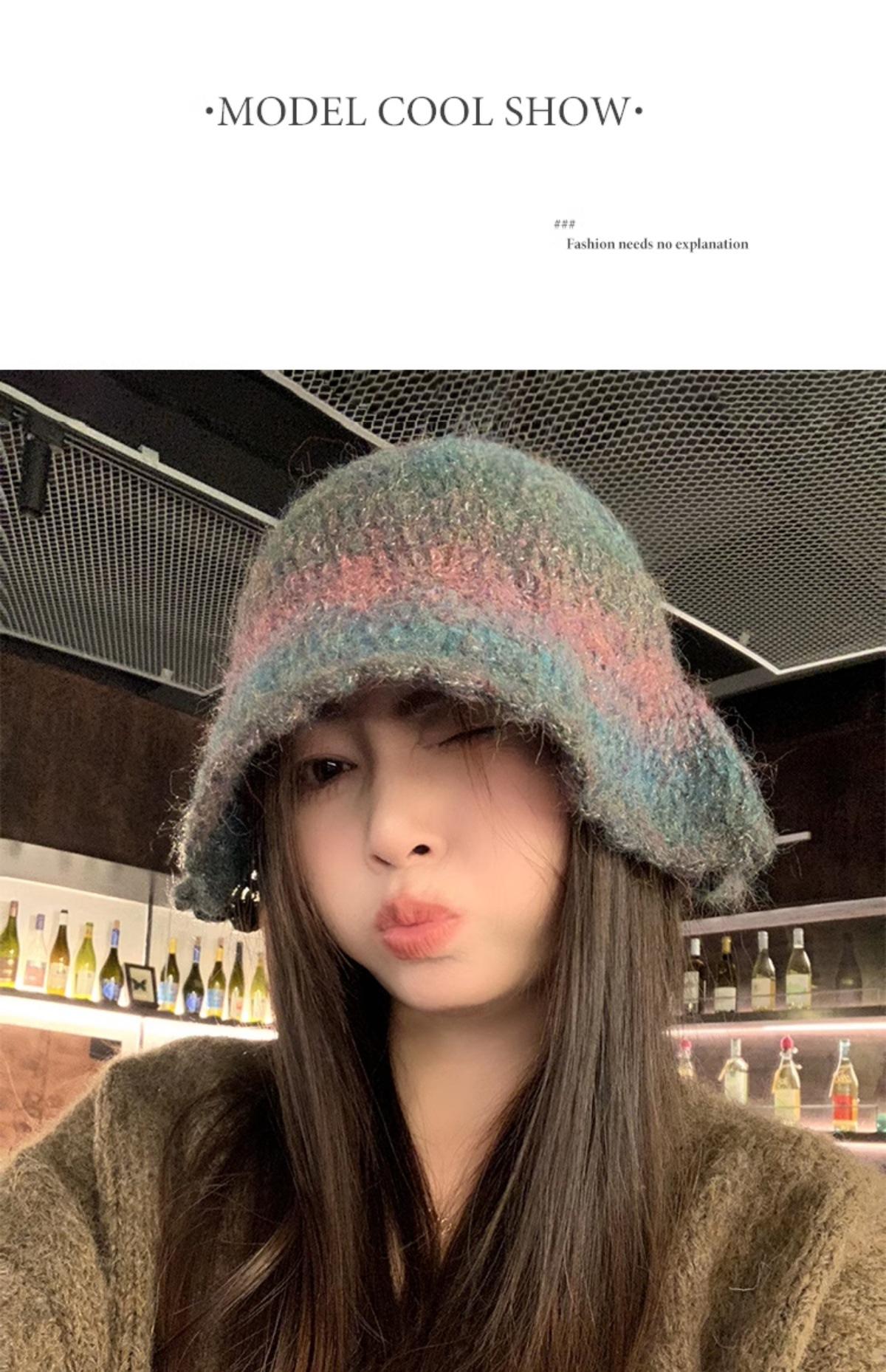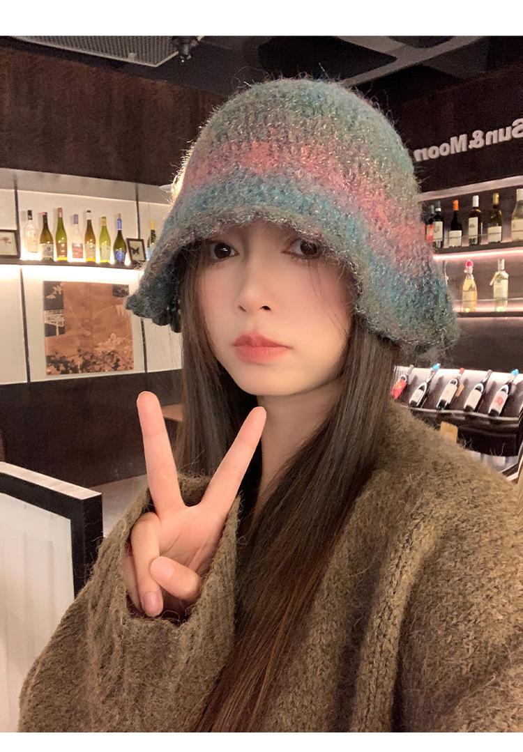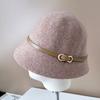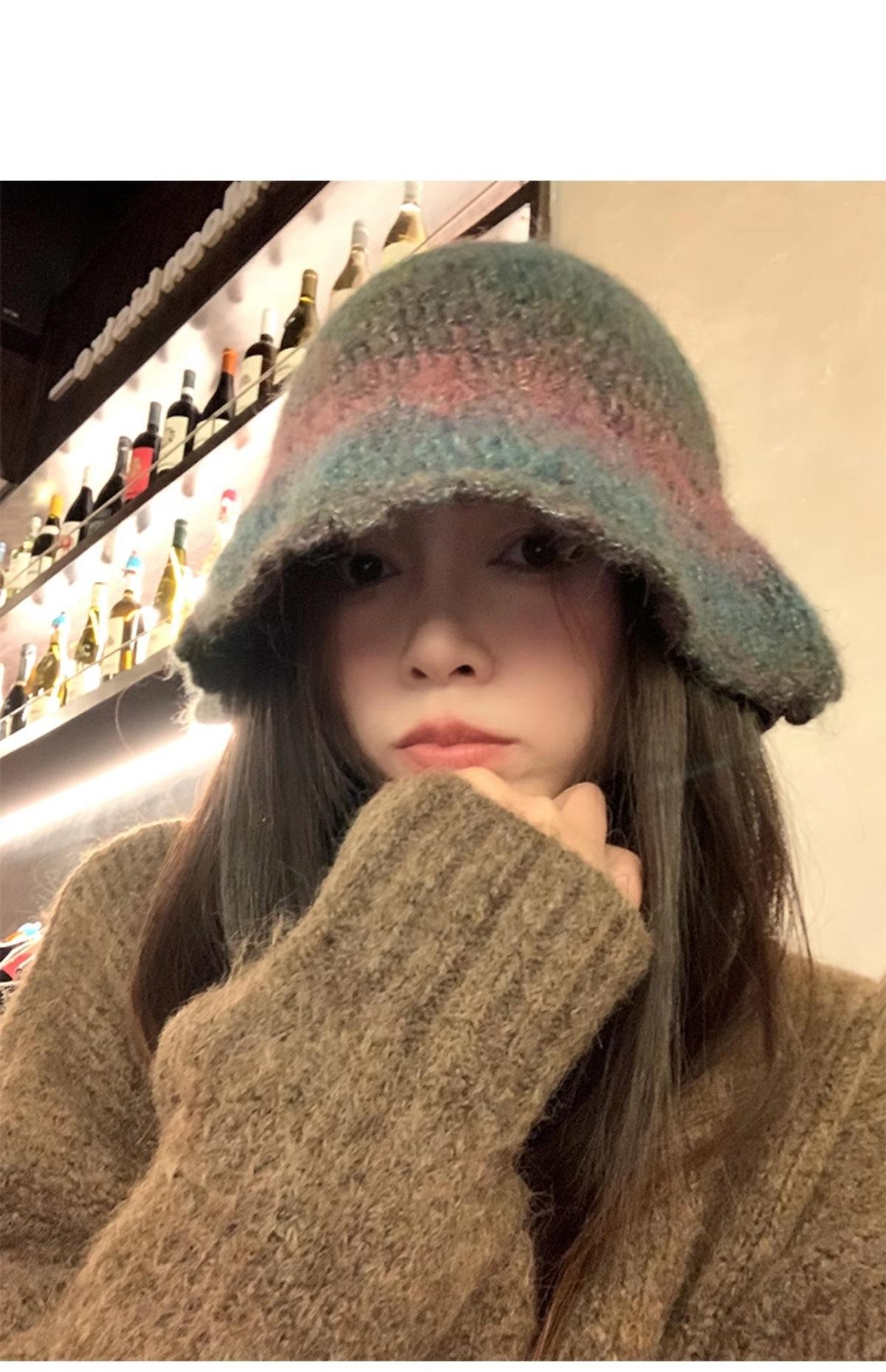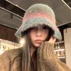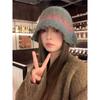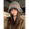 Chapéu de pescador de malha retrô japonês, chapéu feminino de outono e inverno, cabeça grande, chapéu wai, proteção de orelha quente, chapéu de bacia, rosto de inverno, pequeno