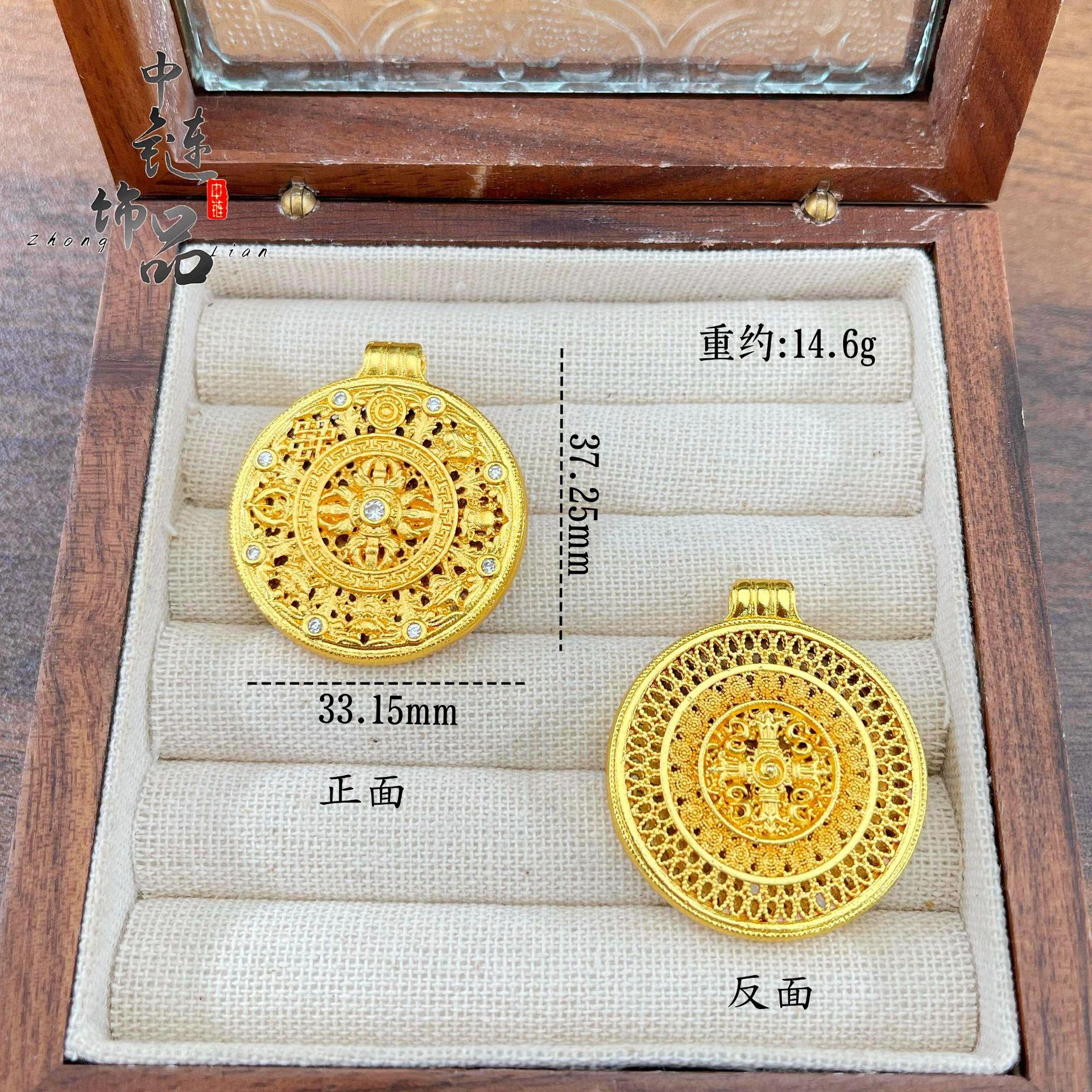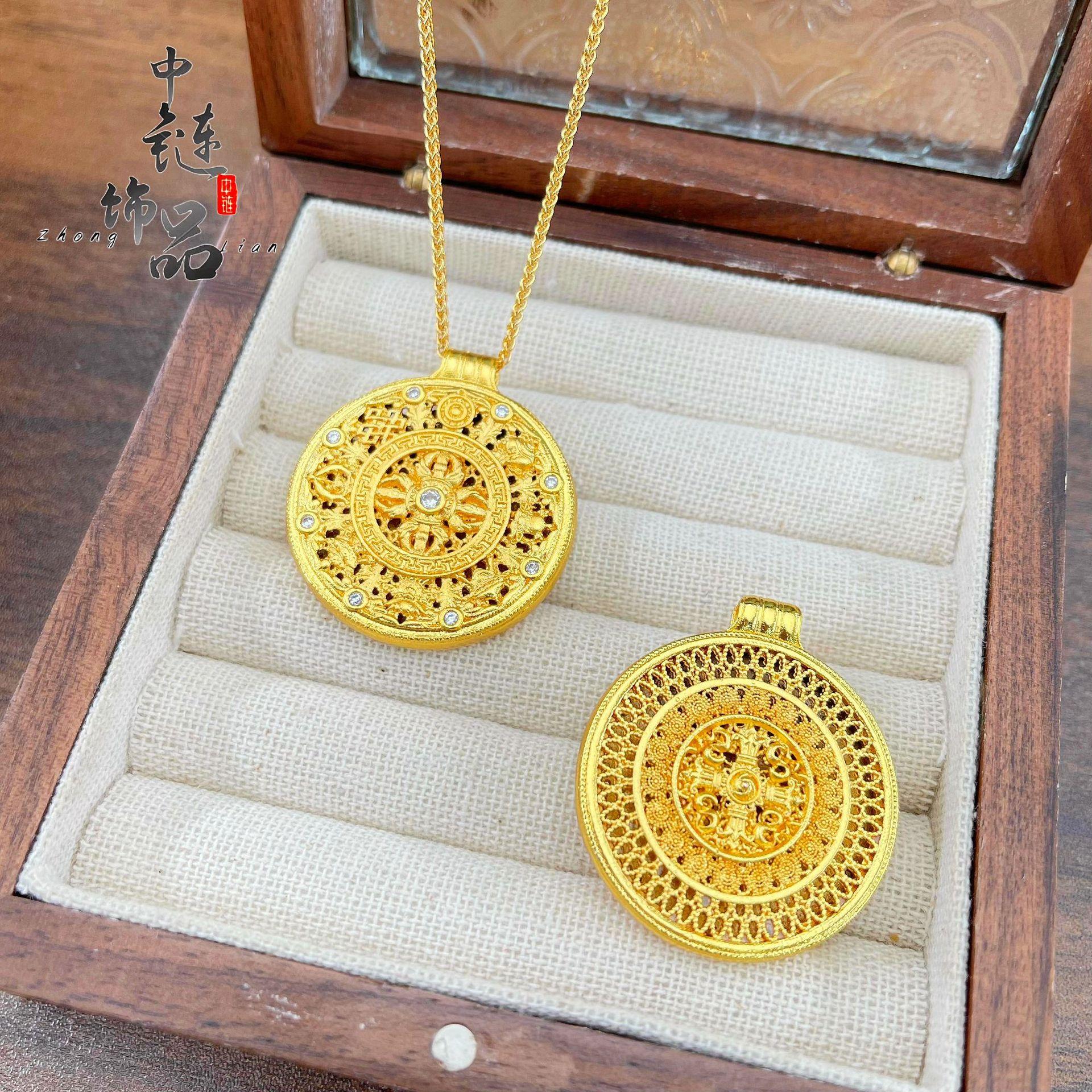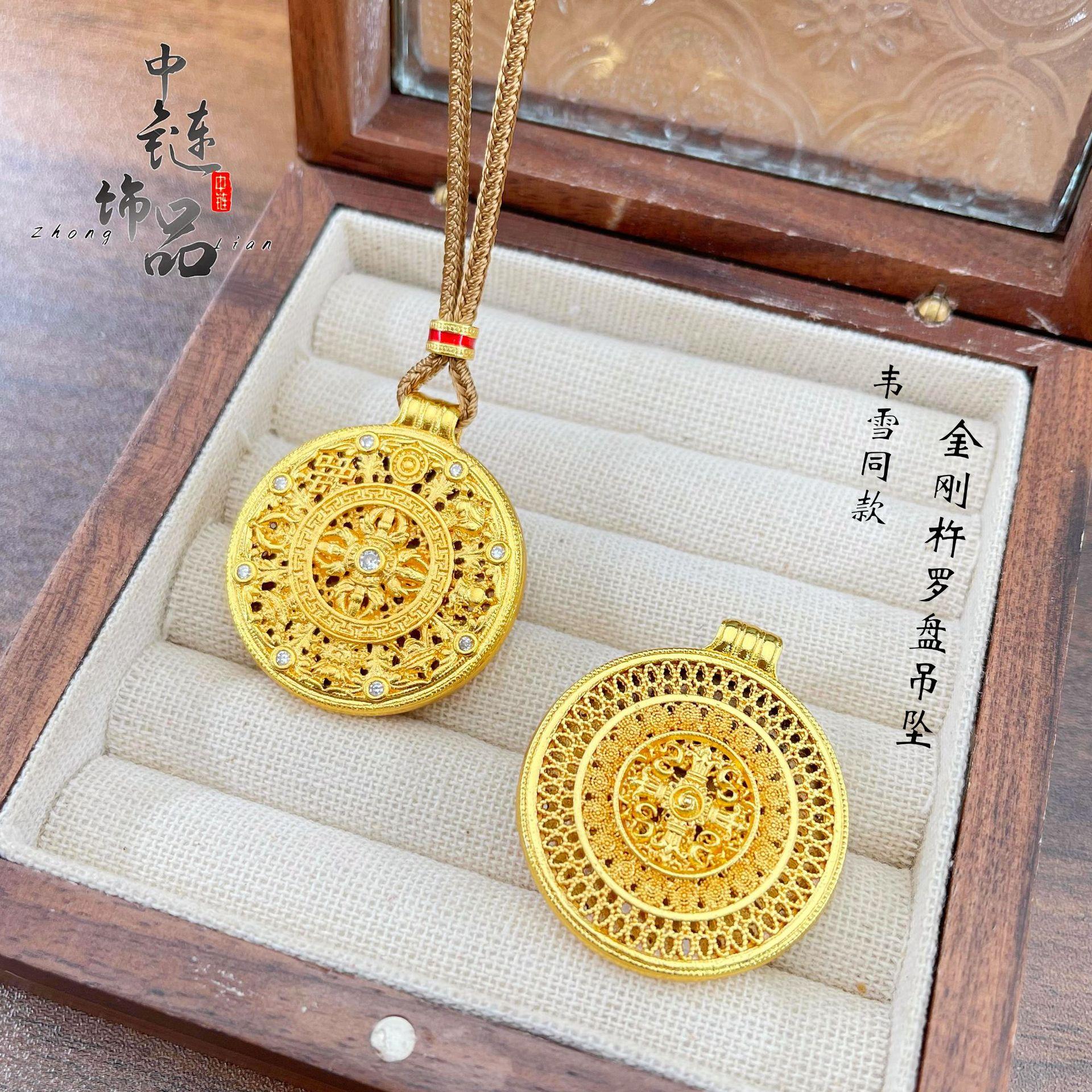 O mesmo ouro de areia vietnamita na loja de ouro com cruz de diamante Vajra e pingente de bússola de oito tesouros O mesmo pingente de bússola de Wei Xue