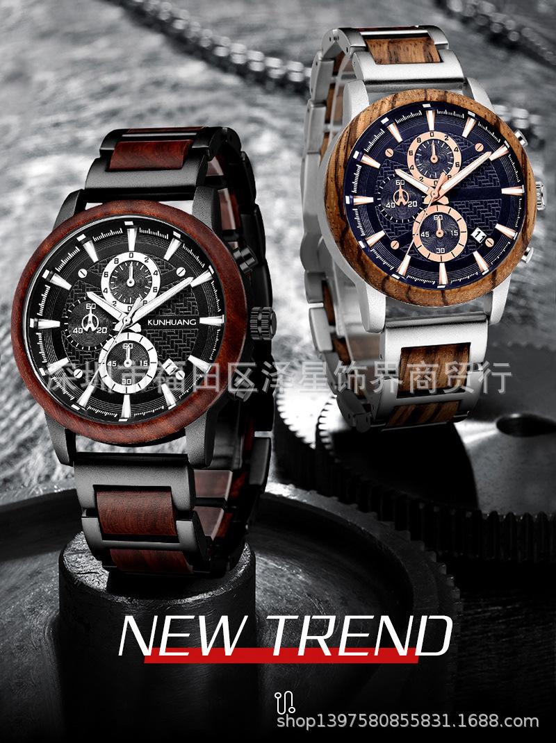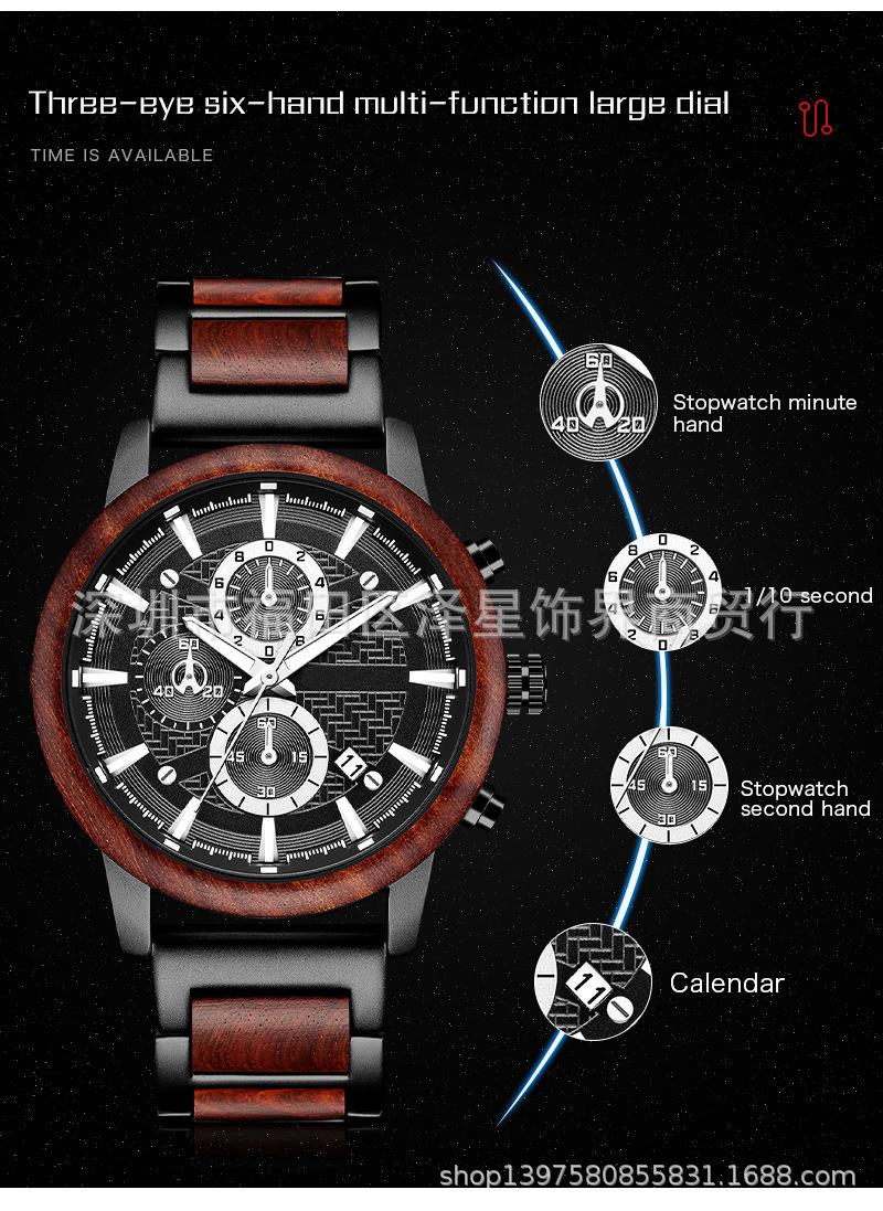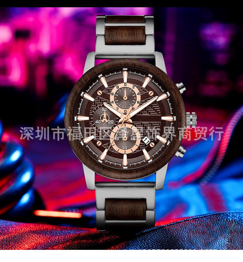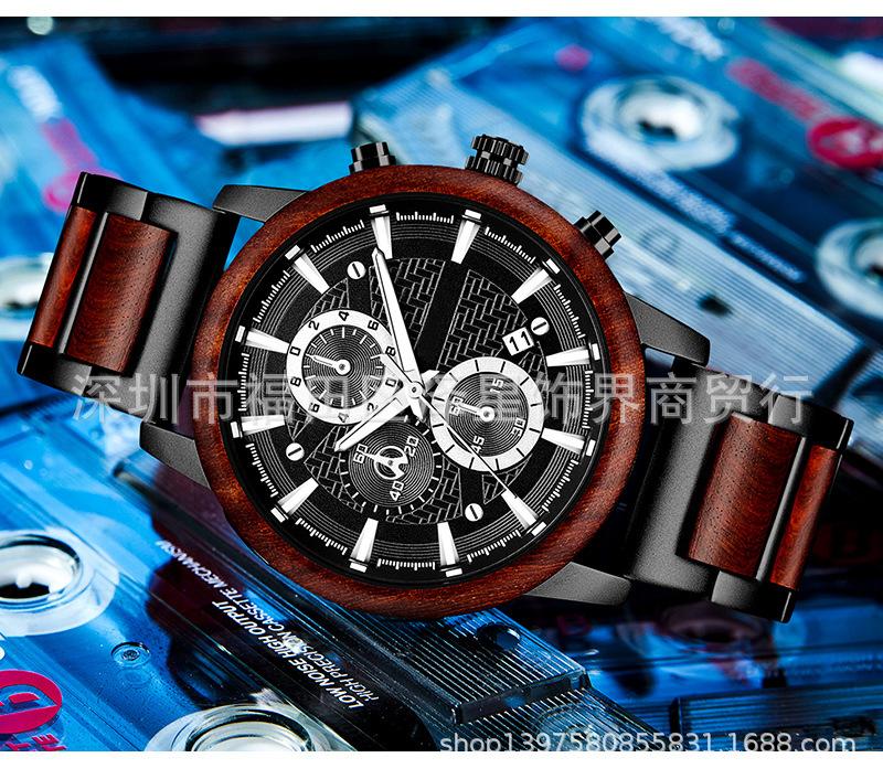 2021 Amazon Sports relógio masculino Wood suit relógio de quartzo calendário relógio de moda multifuncional